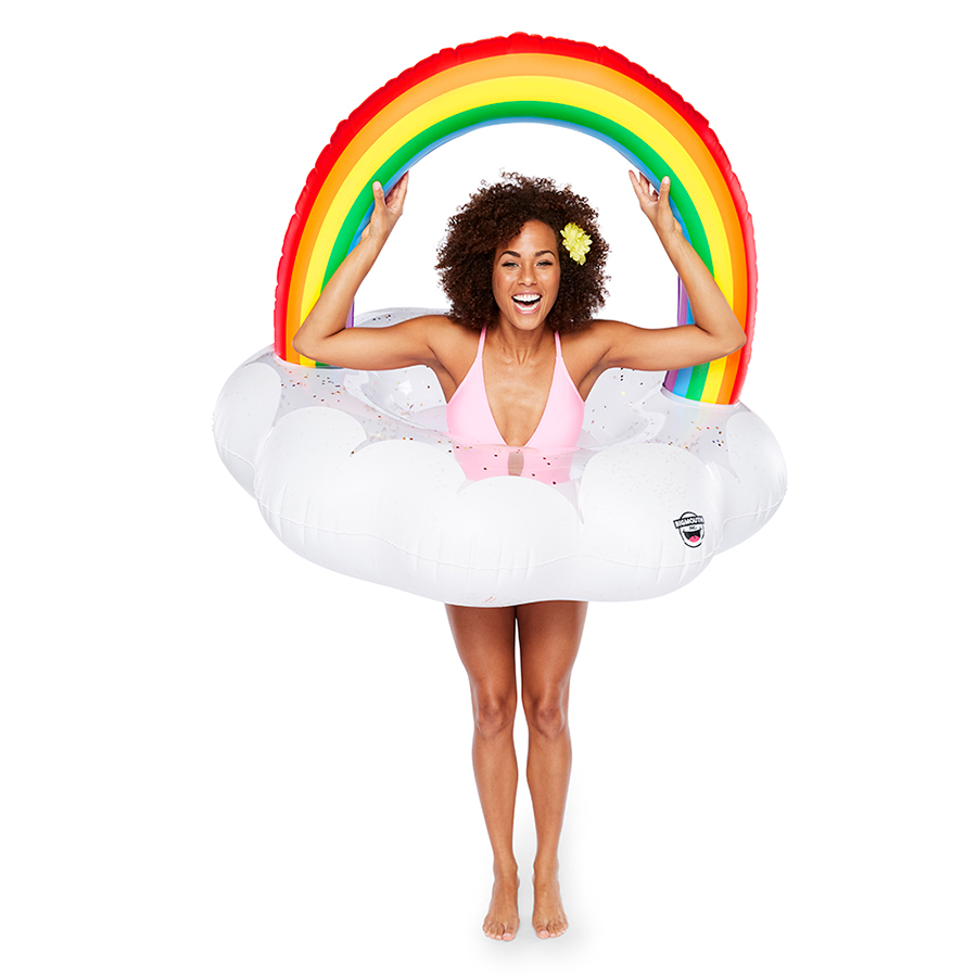 Любите загадывать желания, глядя на радугу? Зачем ждать пока появится радуга в небе, когда она всегда может быть с вами! Нежное облачко с блестками и яркая радуга над головой — всё, что нужно для райского отдыха на море!