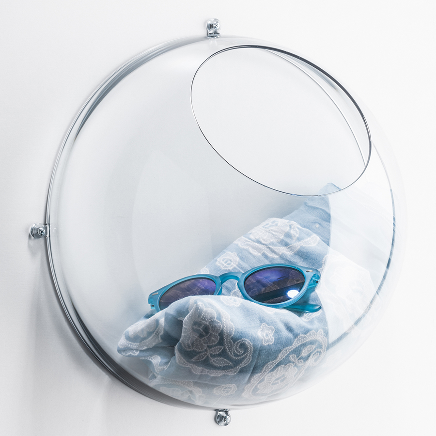 Прозрачный органайзер ORION парит в воздухе, как пузырь, и может служить функциональным украшением инерьера и хранилищем для мелочей. Разъединяется на две полусферы: они также могут служить самостоятельными органайзерами, которые крепятся на стену за отверстия по окружности. Объем сферы 1,9л.