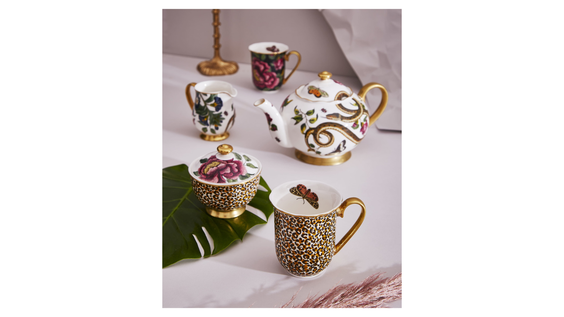 Растительный декор серии «Диковинные создания» украшен 22-каратным золотом, а все предметы имеют подарочную упаковку. Скомплектовать сервиз для личной коллекции или в подарок можно по своему усмотрению на нужное количество персон.
