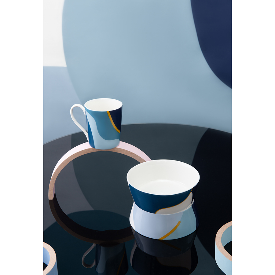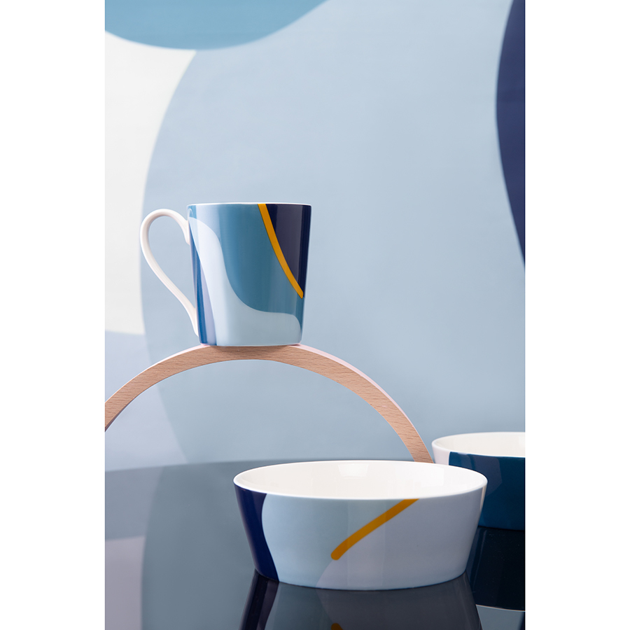 Кружка синего цвета с авторским принтом из коллекции Freak Fruit прекрасно подходит для подачи горячих и холодных напитков. Оригинальный дизайн в духе абстракционизма сделает теплее атмосферу за столом. Принт не имеет повторяющегося раппорта и представляет собой единую законченную картину.