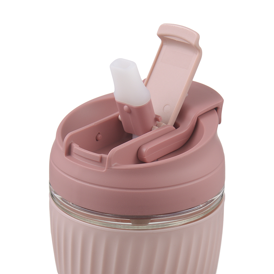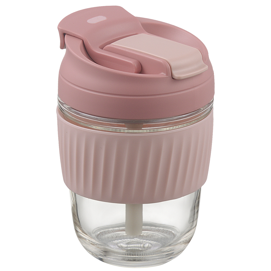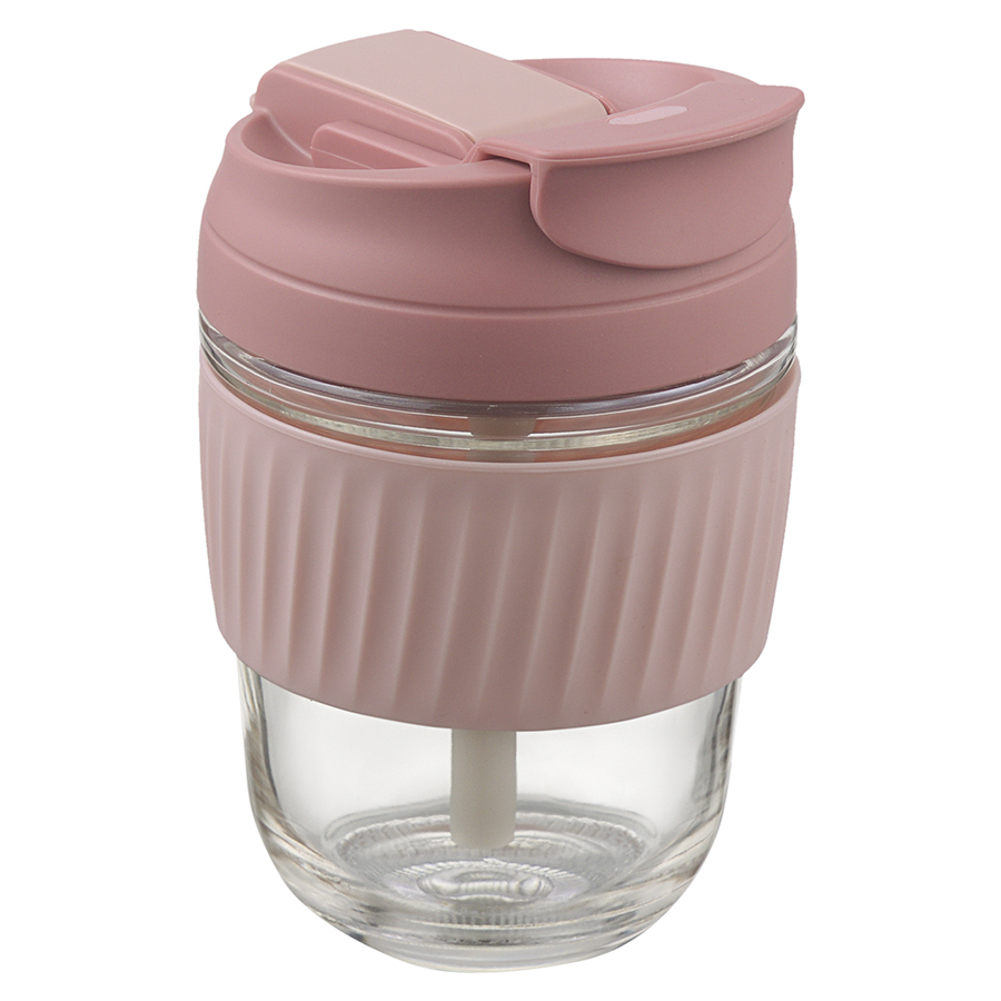 Материалы: стекло, силикон, пластик. Объем: 360 мл. Цвет крышки: розовый.