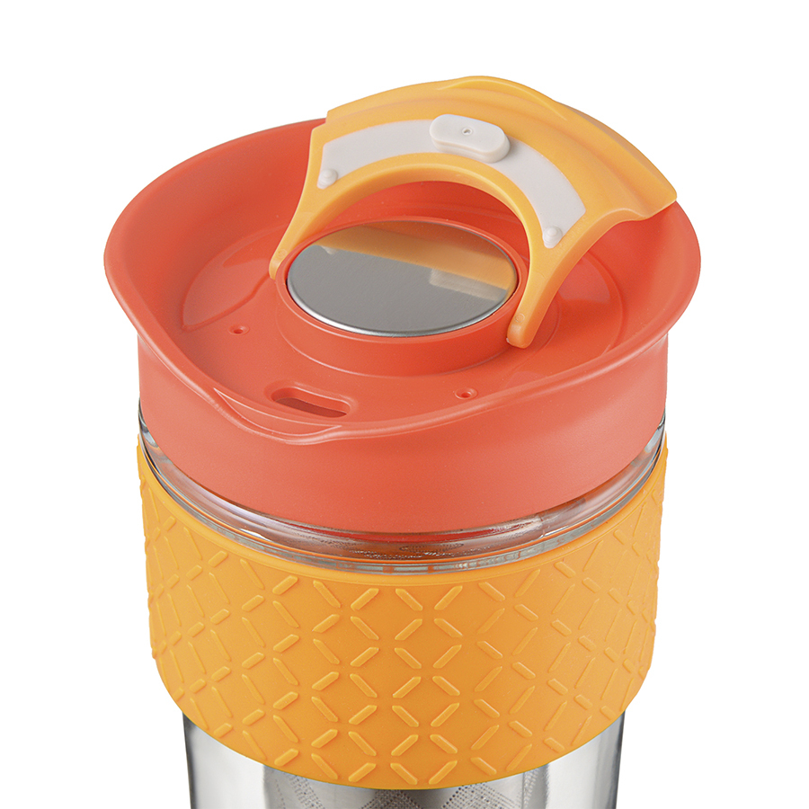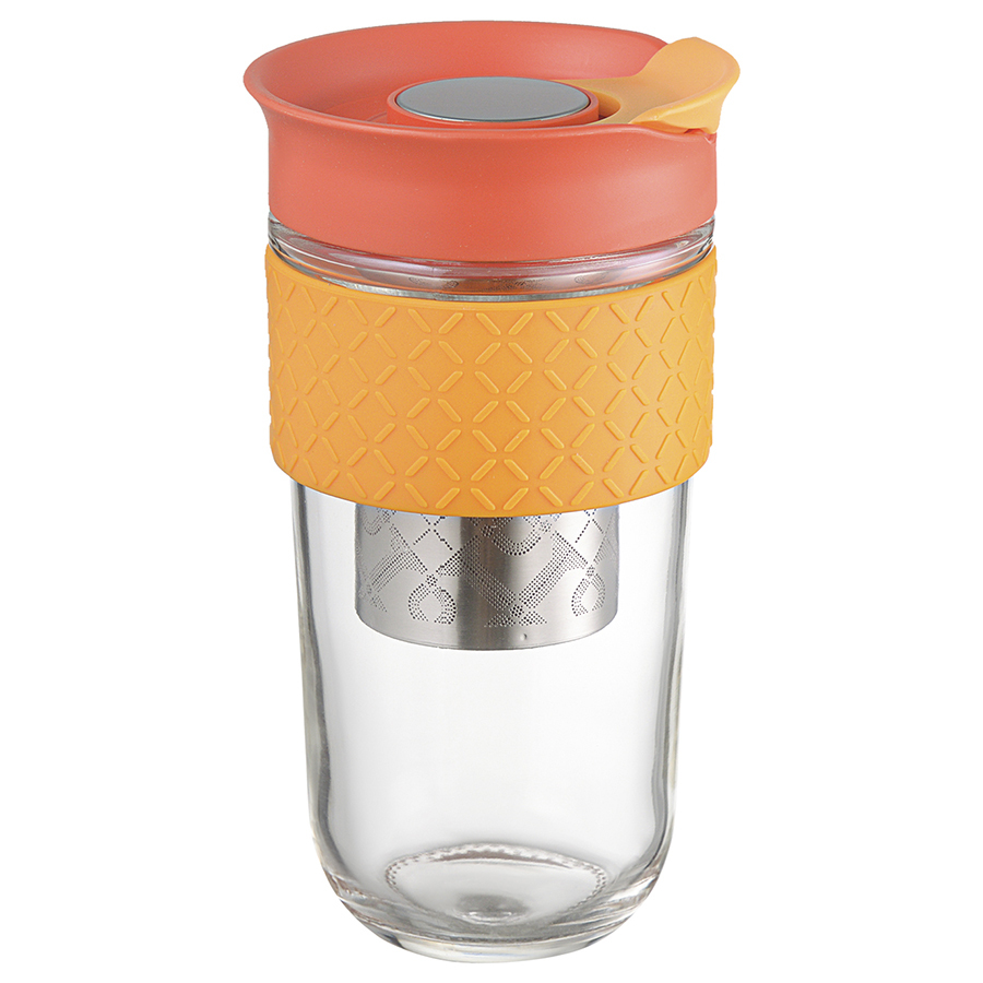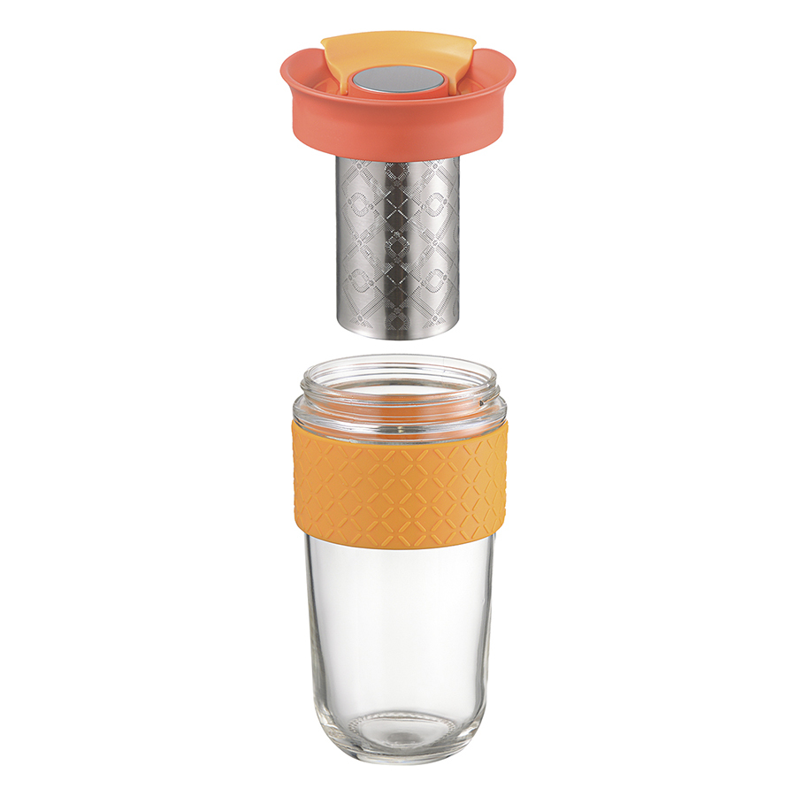 Кружка Jaunt от бренда Smart Solutions позволит взять любимый напиток с собой на прогулку и сократить количество пластикового мусора. Емкость выполнена из боросиликатного стекла. Материал обладает устойчивостью к температурным перепадам, поэтому в кружку можно смело наливать горячий чай или кофе, не боясь, что на стенках появятся трещины. Крышка из пластика и силикона плотно прилегает, исключая проливание. Специальный силиконовый ободок защищает руки от случайных ожогов и делает дизайн более интересным. В производстве не используется вредный бисфенол-А. Благодаря компактным размерам емкость занимает мало места при хранении и транспортировке. В комплект входит ситечко.