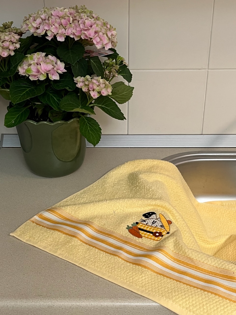 Махровое кухонное полотенце, размер 50 х 70 см, 100% хлопок. Отлично впитывает влагу, мягкое, не линяет, приятное к использованию.