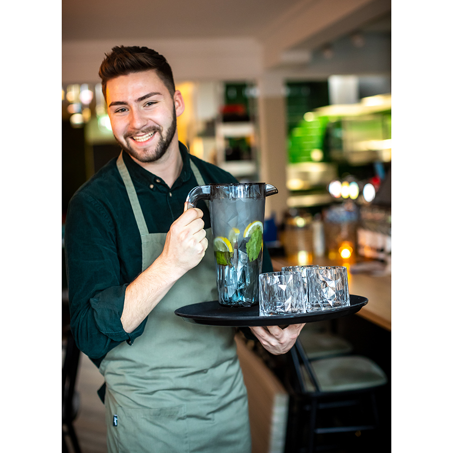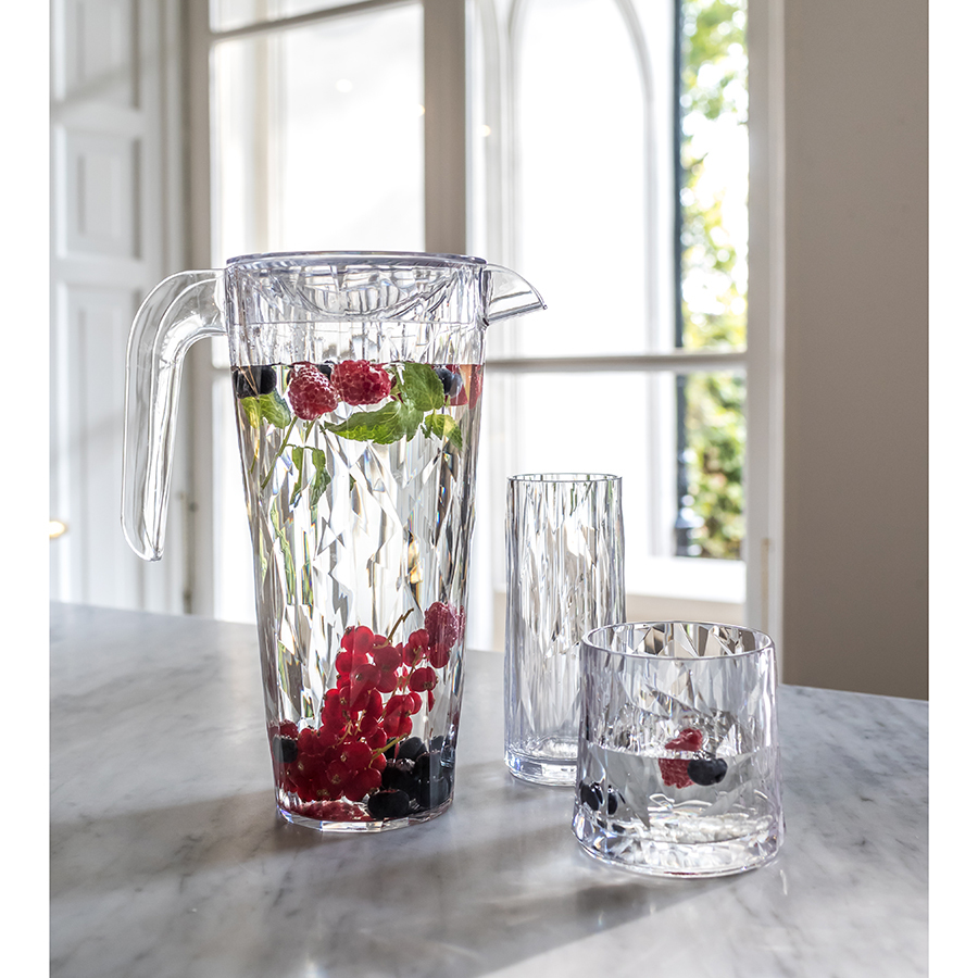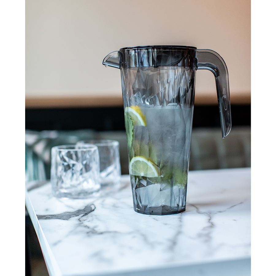 Прочный кувшин в оригинальном дизайне разнообразит подачу любимых напитков.Кувшин сделан из сверхпрочного ударостойкого материала. Он долго держит температуру как холодных, так и горячих напитков. Специальная крышка удерживает лимон, мяту и кубики льда внутри емкости, не давая ингредиентам попасть в стакан при наливании. Материал отличается экологичностью: он не содержит меламина и подлежит вторичной переработке.