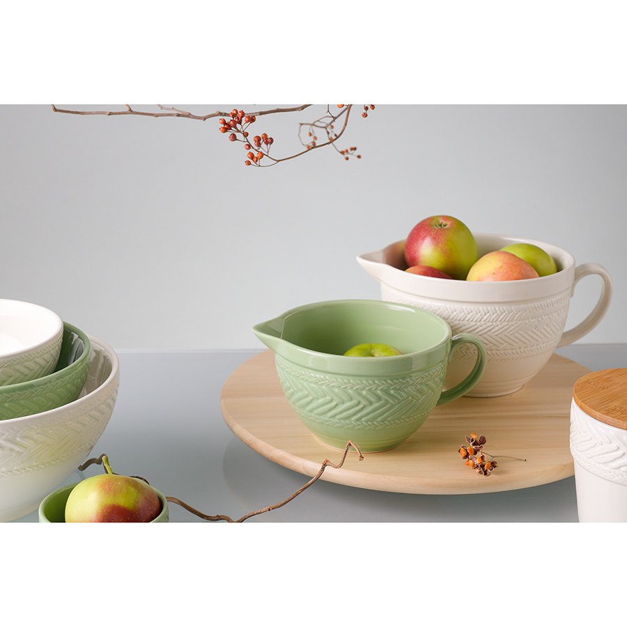 Кувшин Сountry Mill – удобная емкость для смешивания ингредиентов, приготовления различных соусов и крема. Изделие выполнено из экологичной и устойчивой к износу каменной керамики. Покрытие глазурью обеспечивает декоративный вид и защиту от внешних воздействий. Рельефный узор в ретро-стиле придает посуде оригинальность и нотки благородства.