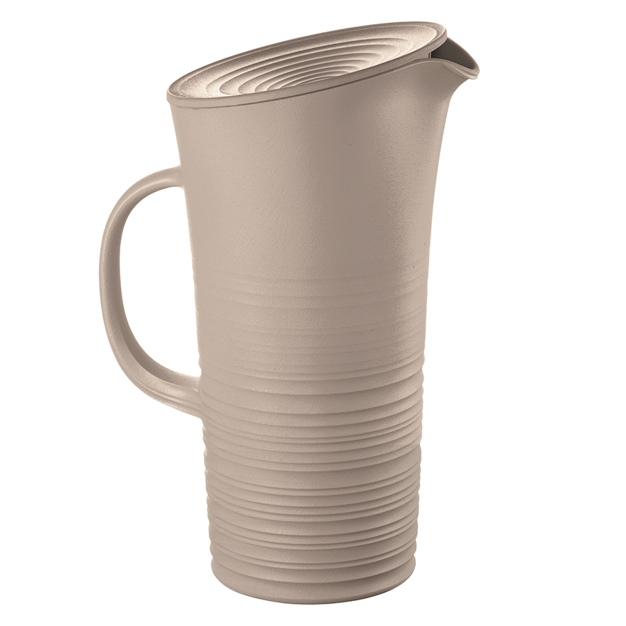 Объемный кувшин из переработанного пластика с фактурой, имитирующей глину, подойдет для подачи освежающих напитков. Крышка удерживает лед, мяту, кусочки фруктов внутри кувшина, предотвращая попадание ингредиентов в бокал.Кувшин произведен из 17 переработанных пластиковых бутылок. Материал безопасен для здоровья.
