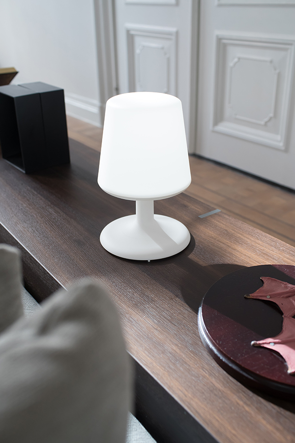 Беспроводная настольная лампа Light to go идеально подходит для дома и улицы. Устройство имеет три уровня подсветки, и может использоваться как для чтения, так и в качестве ночника. Ее можно установить в саду или на балконе, а также на прикроватной тумбе в детской комнате или спальне. Встроенный аккумулятор обеспечивает до 14 часов автономной работы. Корпус изделия выполнен из качественного и прочного полипропилена. Лампа заряжается через USB-кабель.