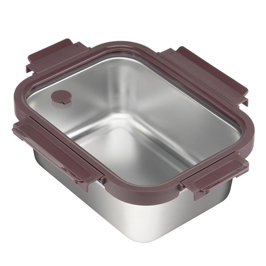 Ланч-бокс из нержавеющей стали – стильная, практичная и надежная посуда для хранения и транспортировки еды. Материал не подвержен коррозии, не впитывает запахи и загрязнения, долго сохраняет привлекательный вид. Крышка из прочного боросиликатного стекла легко выдерживает перепады температуры, имеет специальные фиксаторы, которые помогают избежать протечек. Наличие вентиляционного отверстия позволяет выпустить из контейнера лишний воздух или горячий пар, что повышает герметичность и улучшает условия хранения продуктов. Благодаря компактным размерам емкость не занимает много места в сумке. Ланч-бокс можно смело брать с собой на работу, в поездку или путешествие.