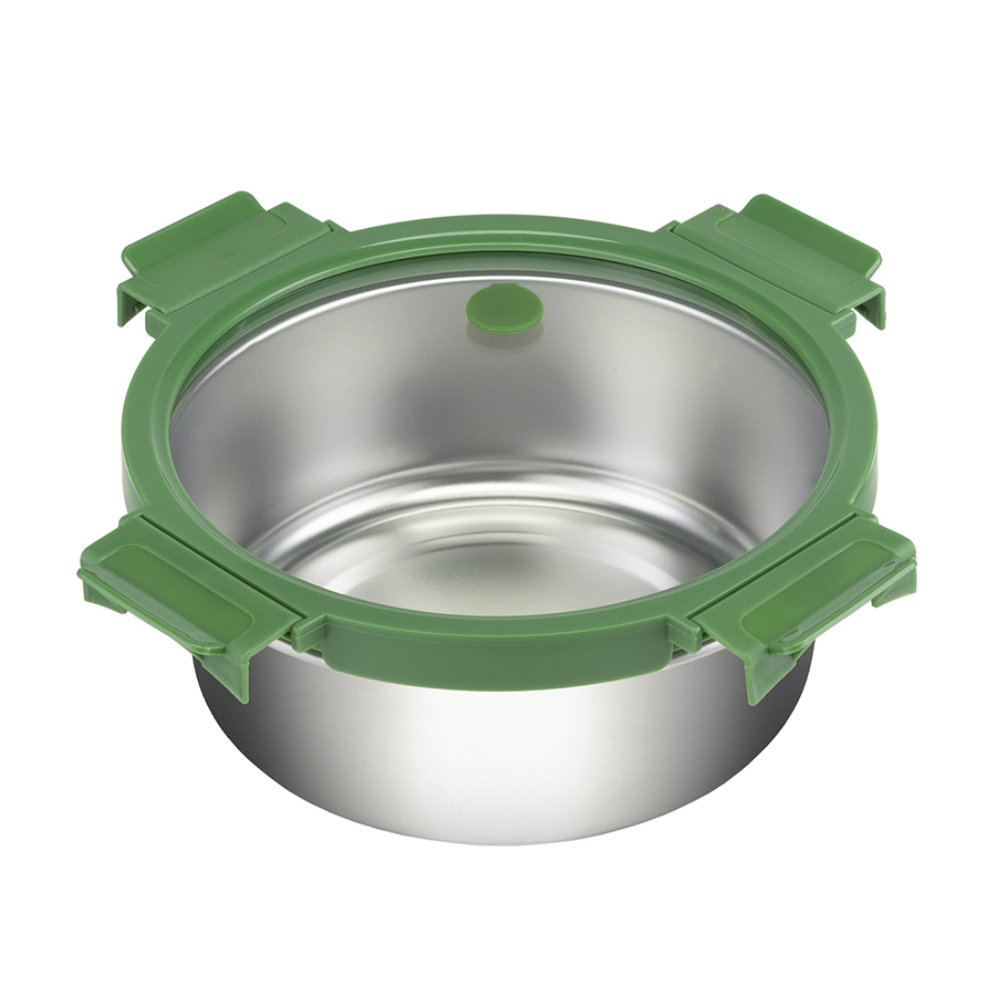Ланч-бокс из нержавеющей стали – стильная, практичная и надежная посуда для хранения и транспортировки еды. Материал не подвержен коррозии, не впитывает запахи и загрязнения, долго сохраняет привлекательный вид. Крышка из прочного боросиликатного стекла легко выдерживает перепады температуры, имеет специальные фиксаторы, которые помогают избежать протечек. Наличие вентиляционного отверстия позволяет выпустить из контейнера лишний воздух или горячий пар, что повышает герметичность и улучшает условия хранения продуктов. Благодаря компактным размерам емкость не занимает много места в сумке. Ланч-бокс можно смело брать с собой на работу, в поездку или путешествие.