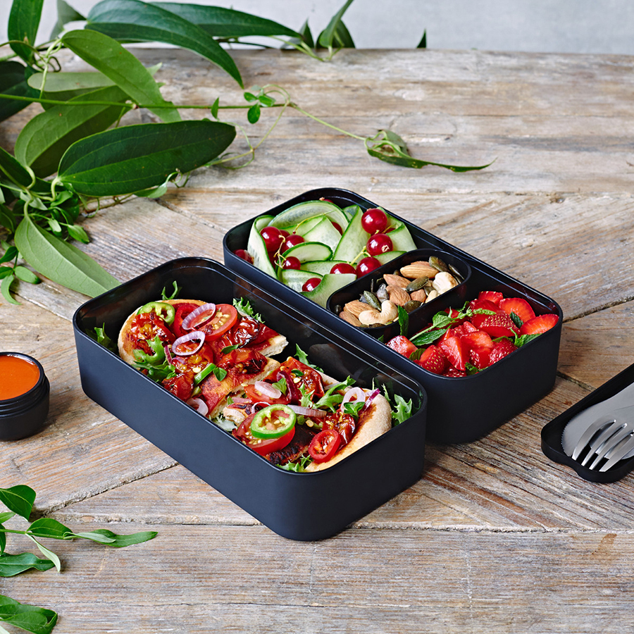 Небольшой ланч-бокс MB Original используется для переноски завтраков, обедов или ужинов. Такой аксессуар просто незаменим для школьников, студентов, офисных работников, а также любителей веселых пикников на природе. Два контейнера, изготовленные из пищевого PBT пластика, полностью сохраняют полезные свойства продуктов. Крышки плотно прилегают к емкостям, предотвращая протекание жидкости. Материал не содержит бисфенола-А, формальдегидов и других вредных веществ, не впитывает запахи, легко моется. Износостойкая поверхность устойчива к ультрафиолету, ударам и другим внешним воздействиям. Контейнеры с продуктами можно разогревать в микроволновой печи или замораживать в морозильной камере.