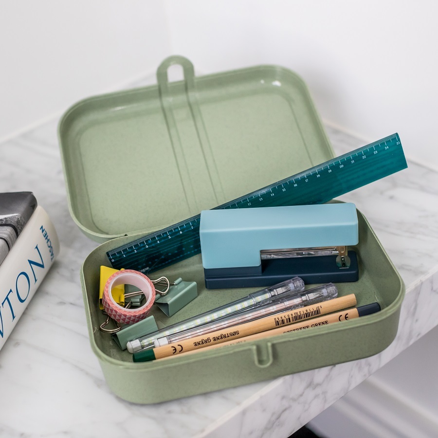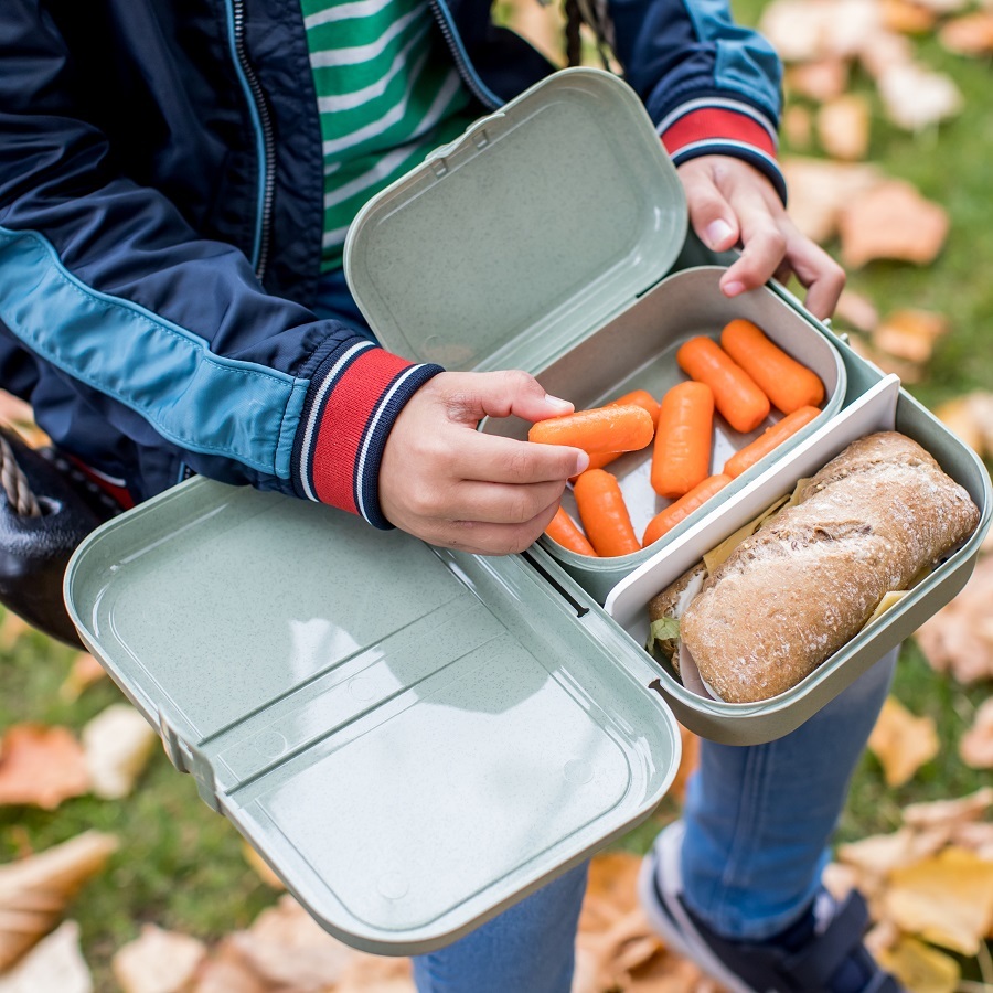 Ланч-бокс PASCAL L – вместительная коробка для школьных обедов или перекусов на работе. За счет обтекаемой формы и плавных линий емкость можно переносить в сумке или рюкзаке без риска повредить тетради, документы или другие важные предметы. Бокс вмещает бутерброды, орехи, печенье, фрукты и другие закуски. Изготовлен из органического материала на основе целлюлозы, не содержит формальдегидов, бисфенола А. Ланч-бокс можно мыть в посудомоечной машине.
