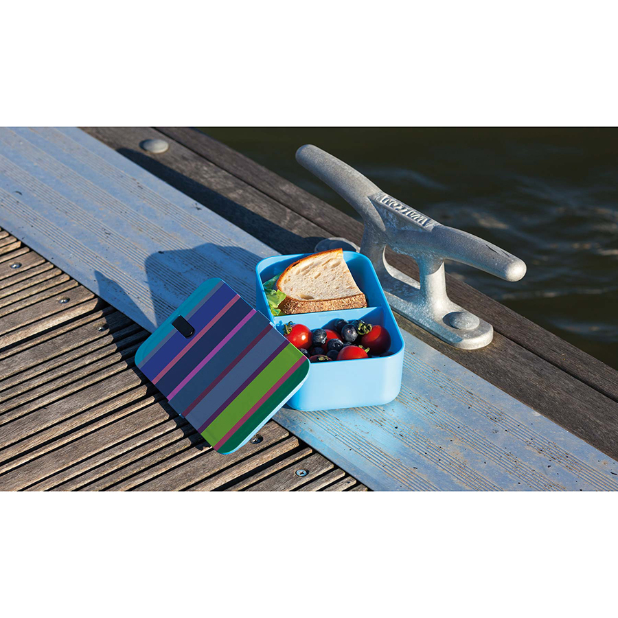 Герметичный контейнер сохраняет свежесть сэндвичей, салатов, десертов, а регулируемая стенка позволяет разграничивать два разных блюда. Ланч-бокс имеет закрывающееся вентиляционное отверстие. Пластик не содержит бисфенола А.