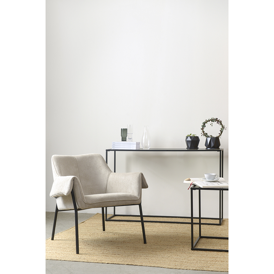 Лаунж-кресло Aline с обивкой из фактурного шенилла выглядит уютно и в то же время благородно. Материал приятный на ощупь и простой в уходе. Комфорт при сидении достигается за счет высокой наклонной спинки, глубокой посадки и удобных мягких подлокотников. Светлая мебель с лаконичным силуэтом идеально вписывается в интерьер гостиной, рабочего кабинета или спальни, оформленных в скандинавском стиле, лофт, эклектика, фьюжн, неоклассика и др.