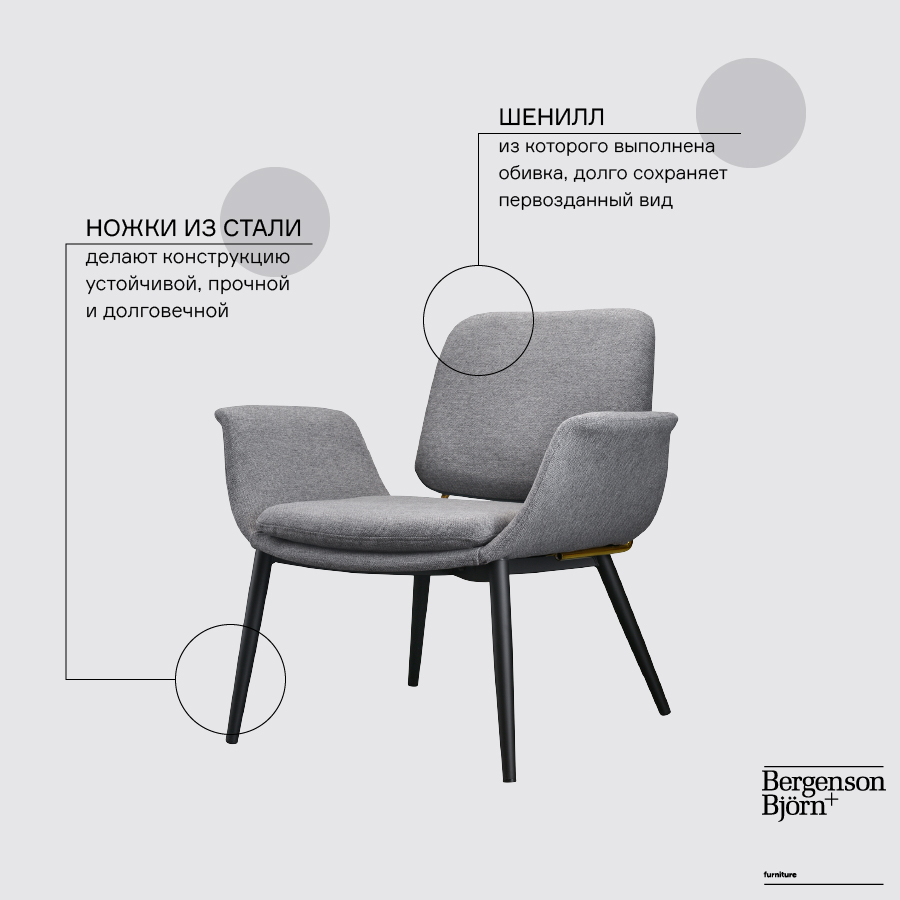 Лаунж-кресло Hilde – не только комфортная мебель, но и стильный акцент интерьера. Изюминкой модели является оригинальное сиденье, плавно переходящее в высокие подлокотники. Для дополнительного удобства предусмотрена мягкая подушка. За обивкой из шенилла легко ухаживать. Материал долго сохраняет первозданный вид. Благодаря нейтральному цветовому решению и лаконичному силуэту кресло прекрасно вписывается в различные варианты оформления помещения: неоклассика, фьюжн, эклектика, сканди и др.