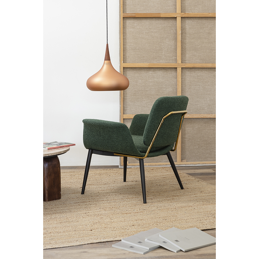 - Обивка из буклированной ткани делает кресло уютным и элегантным. Прочный и износостойкий материал долго сохраняет первоначальные качества, легко чистится.
