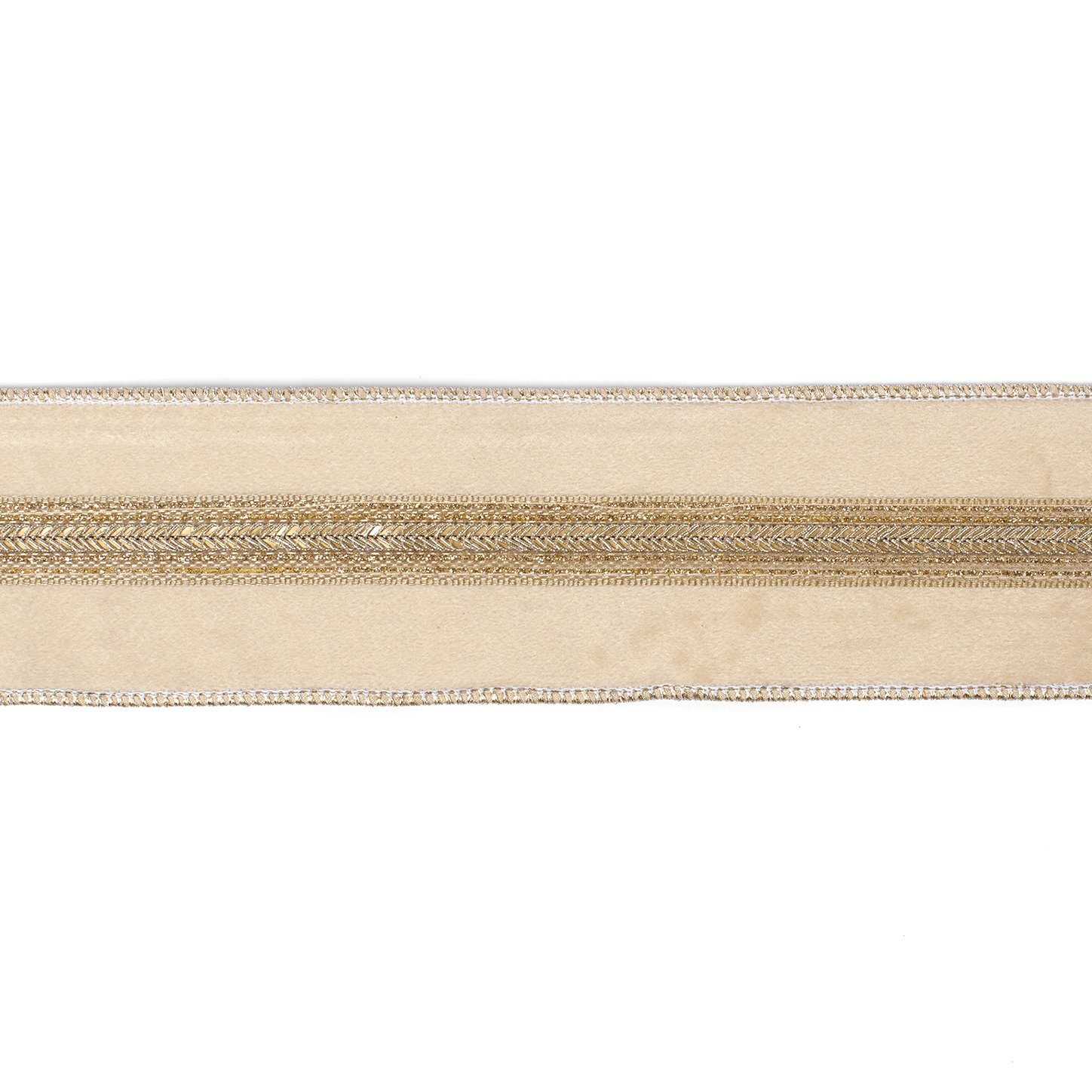 Лента на елку вельветовая ширина 6.4см Goodwill M&G кремовая с золотом