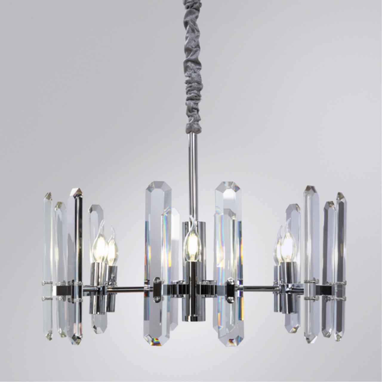Коллекция TENERIFE и модель 7136/02 LM-6 итальянского производителя Divinare разработана для интерьера гостиной в стиле модерн. Осветительный прибор крепится к скобе. Подвесная люстра Divinare TENERIFE может осветить 18 кв. м, весит 8.43 кг и обладает габаритами 45 см по высоте, 60 см диаметром. Арматура цвета хром выполнена из металла, плафон, направленный вверх, произведен из хрусталя.