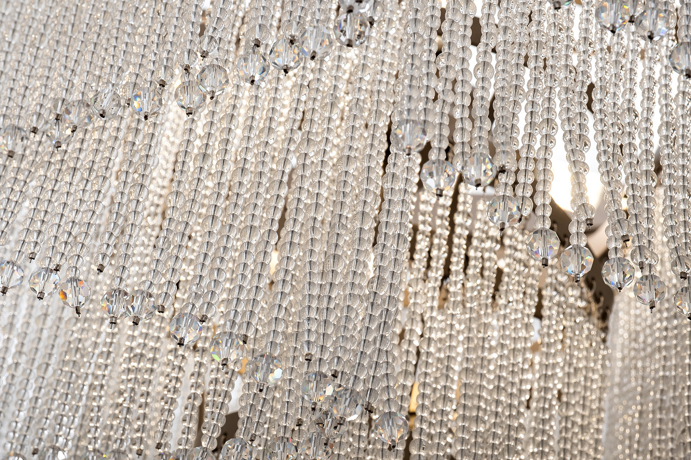 Стильная потолочная люстра NIAGARA выполнена из многочисленных стеклянных подвесок в виде круглых бусин. Кристаллы из прозрачного стекла преломляют искусственный свет и создают волшебный эффект мягкого элегантного сияния. При этом лампы остаются незамеченными, а свет рассеивается по всей площади помещения. Люстра с подвесками легко справляется с ролью главного интерьерного декора за счет благородного блеска металла и визуальной легкости стекла. Качество материалов и функциональность светильника на высоте. Это яркий пример осветительного прибора премиум класса.