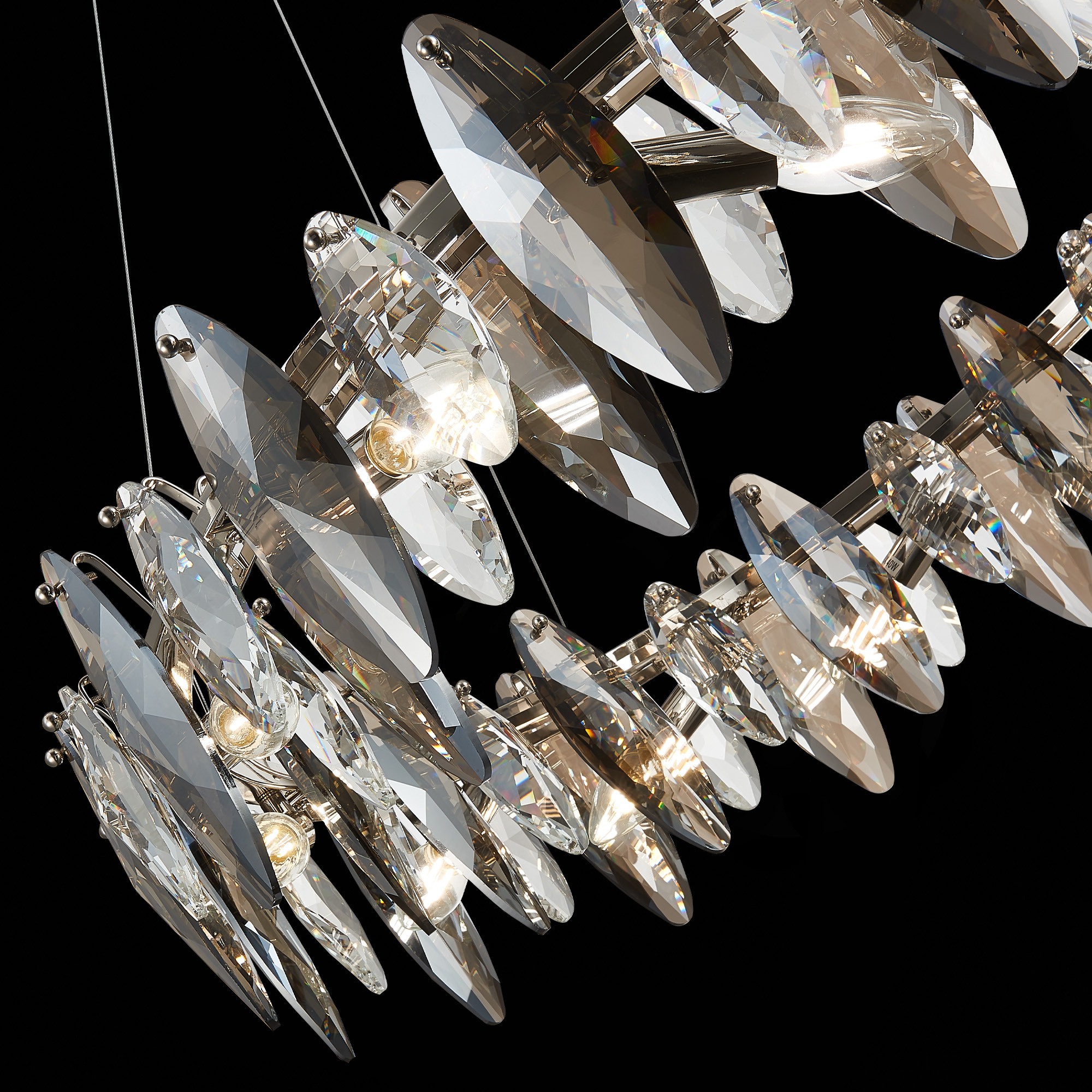 Невероятно элегантная коллекция подвесных светильников Ancona станет настоящим украшением вашего интерьера. Стильная цветовая гамма в сочетании с деталями из хрустального стекла придадут изящности и лоска. Особенно эффектно светильники выглядят при включенном свете: граненые подвески преломляют свет, создавая искрометные блики.