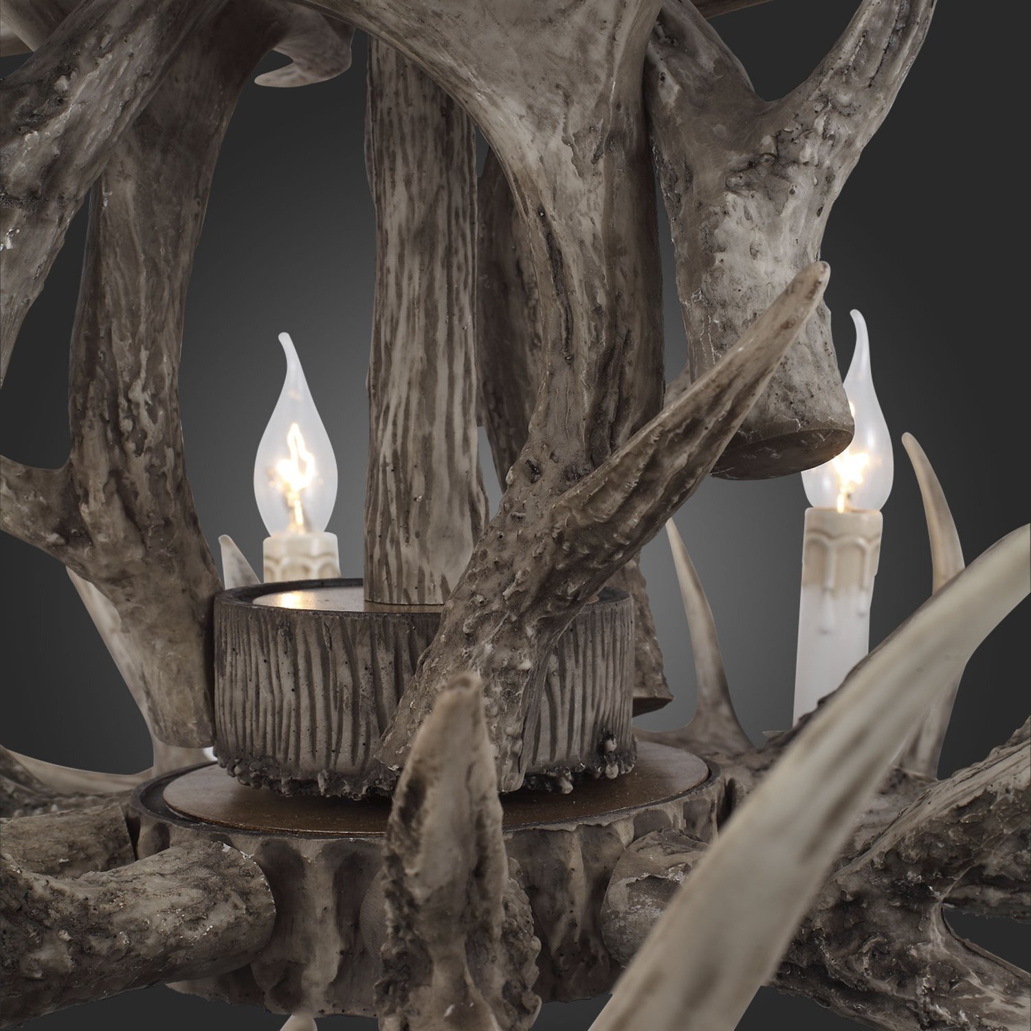 Каркас светильников из коллекции Corna выполнен из смеси смол, окрашенных в серый цвет. Аутентичный природный дизайн дополнен лампами, имитирующими свечи. Такие светильники наполнят помещение домашним теплом и уютом, добавят шика и стиля интерьеру и при этом создадут атмосферу торжественности и праздничности.