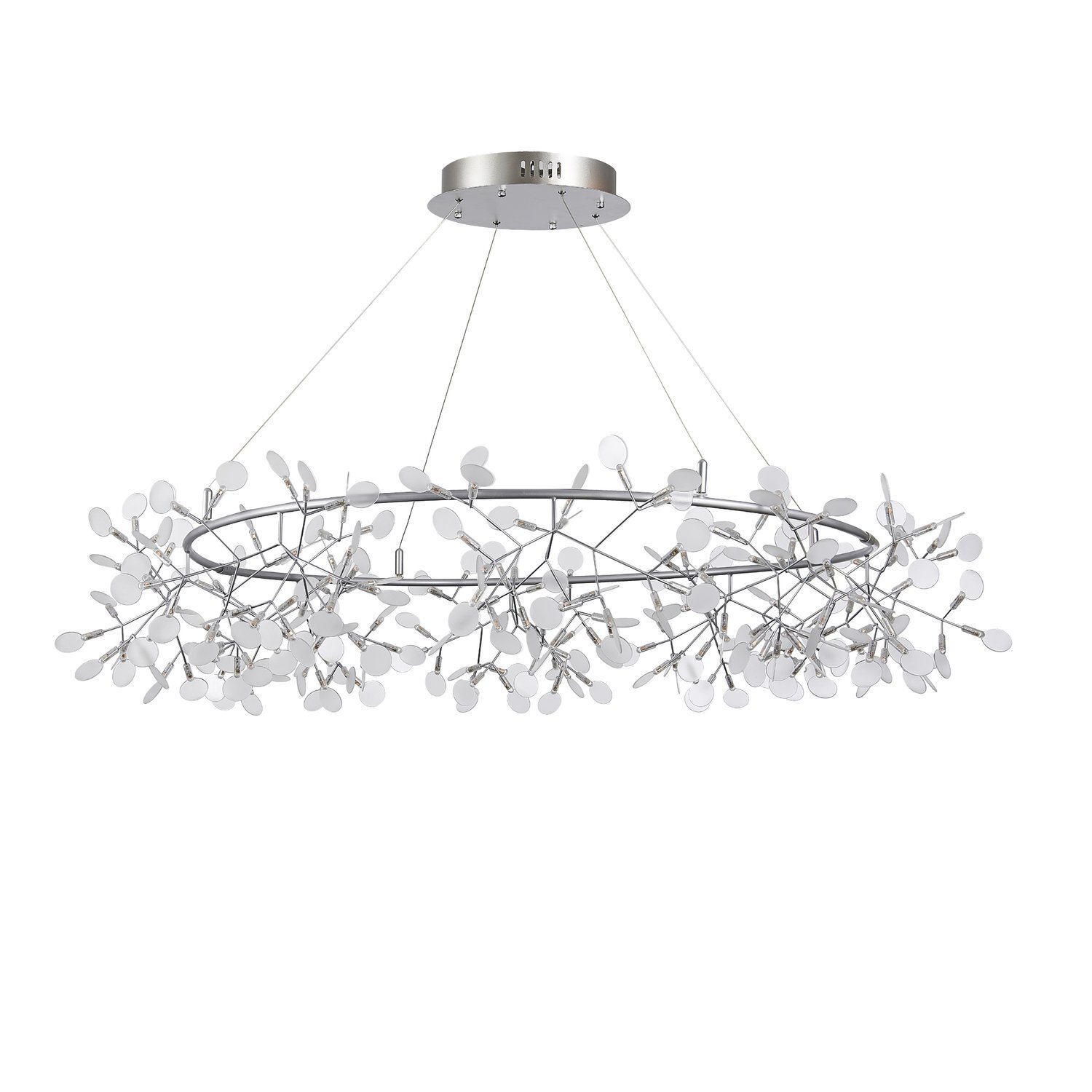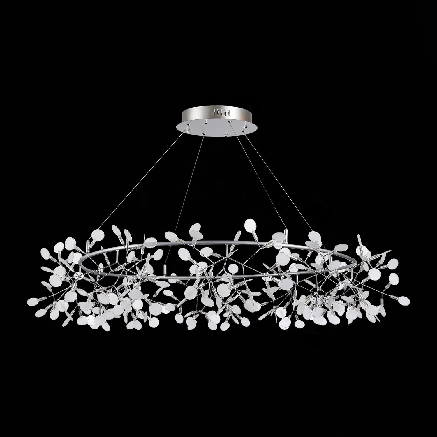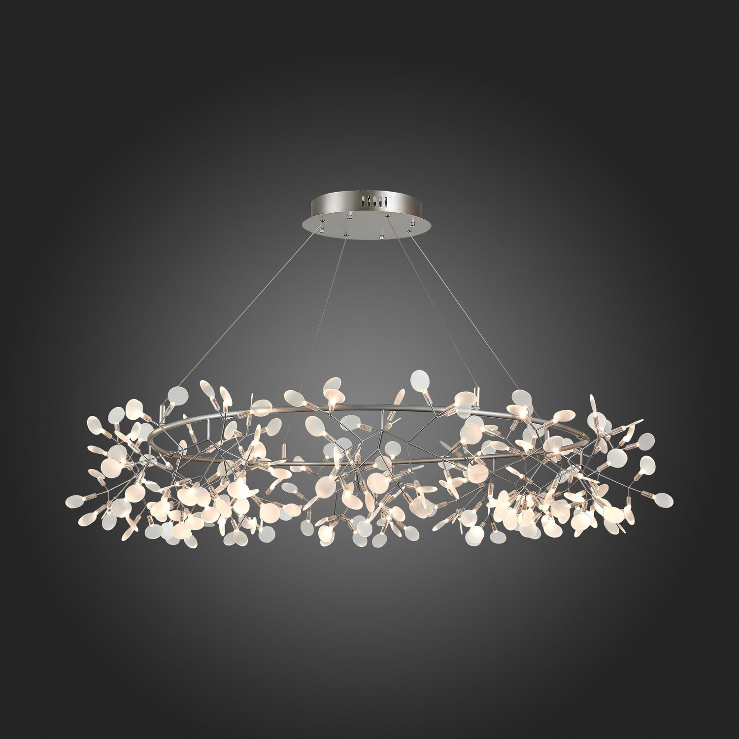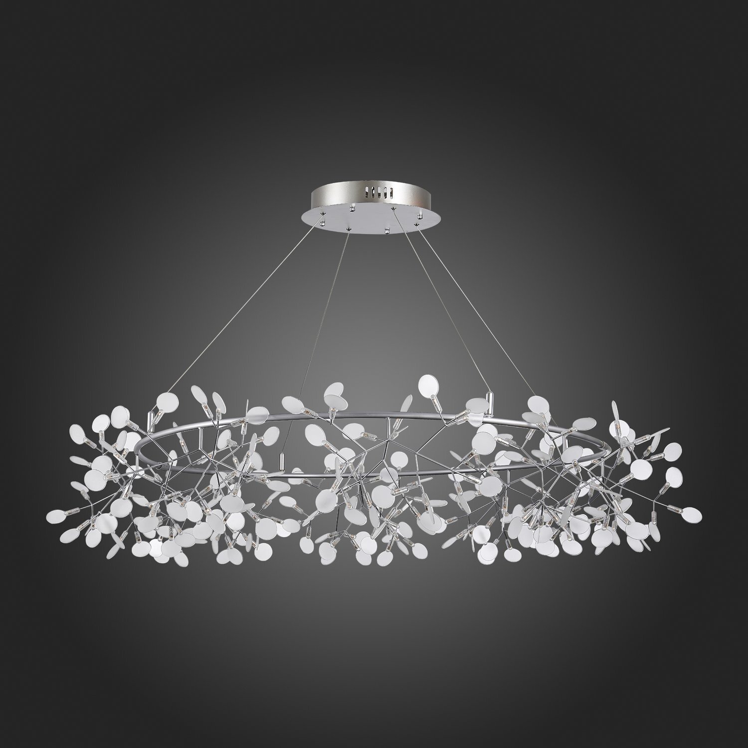 Люстра Rafina — это замечательный образец светильника, который смотрится легко и изящно, оживляет интерьер и дарит чудесное весеннее настроение. Нежная тонкая арматура основания выполнена из металла. Плафоны из белого акрила, похожие на лепестки, окружают лампочки LED. Стильный и невероятно изящный облик люстры Rafina станет акцентом многих современных интерьеров.