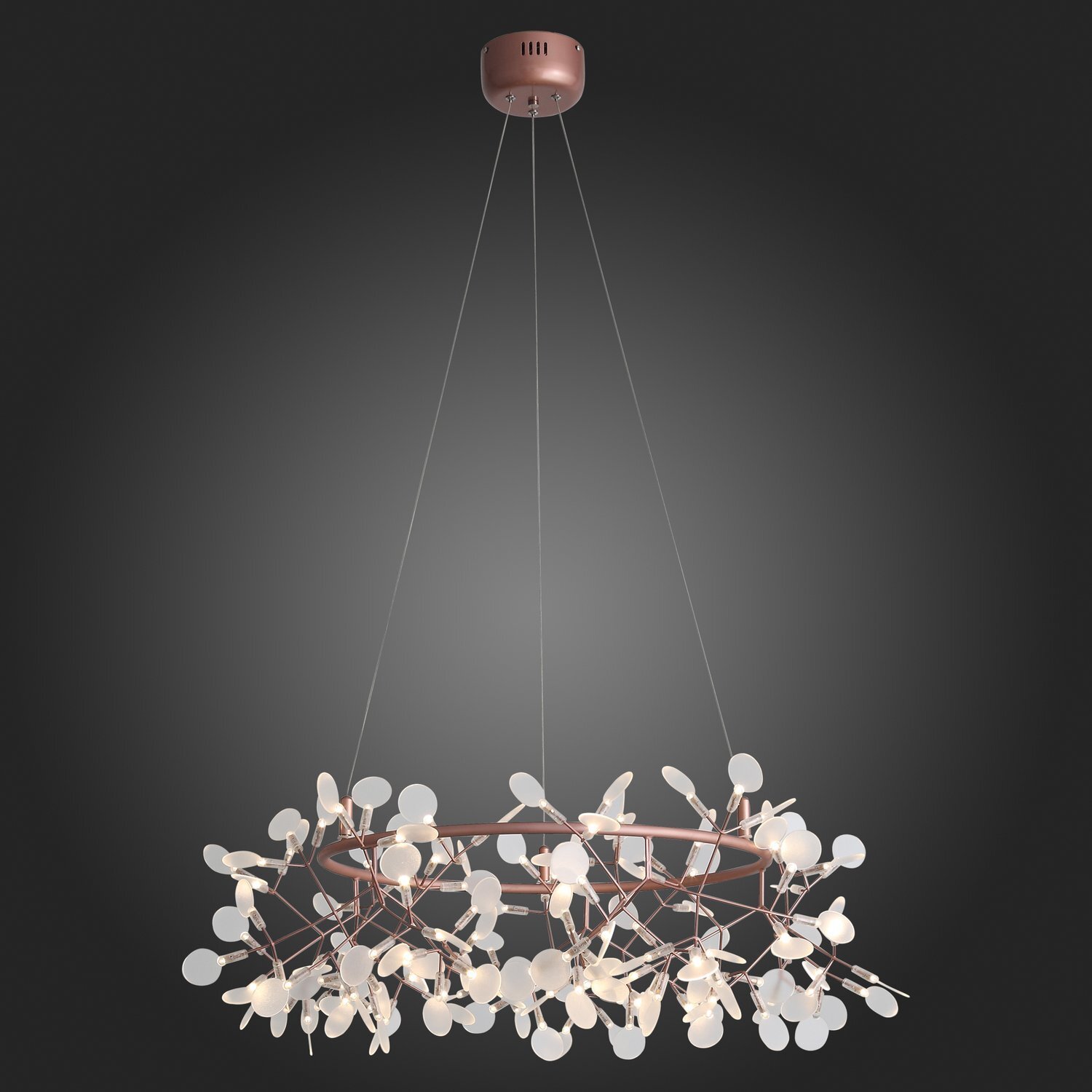 Люстра Rafina — это замечательный образец светильника, который смотрится легко и изящно, оживляет интерьер и дарит чудесное весеннее настроение. Нежная тонкая арматура основания выполнена из металла. Плафоны из белого акрила, похожие на лепестки, окружают лампочки LED. Стильный и невероятно изящный облик люстры Rafina станет акцентом многих современных интерьеров.