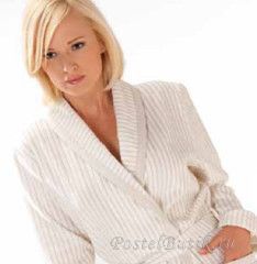 Халат Schalkragen Velours от Cawo - мягкий, пушистый велюровый халат на запах в полоску с воротником шалькой, с длинными рукавами, со сьемным поясом и карманами.