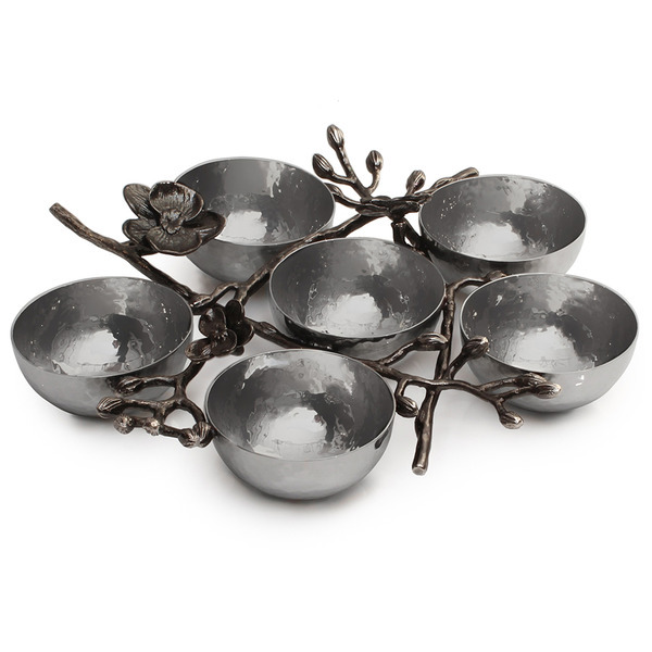 Менажница шестисекционная 28см Michael Aram Чёрная орхидея серебристая