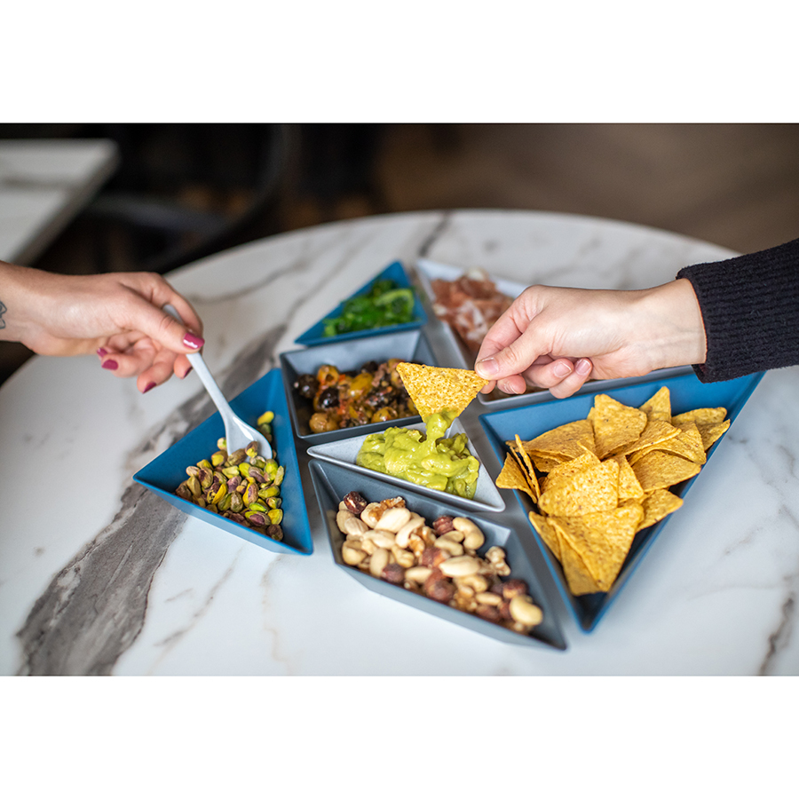 Менажница из семи аксессуаров подходит для подачи закусок, соусов или суши.Элементы можно компоновать по-разному, создавая оригинальные композиции. Изделие отличается высокой прочностью. Материал не содержит бисфенола-А и меламина.
