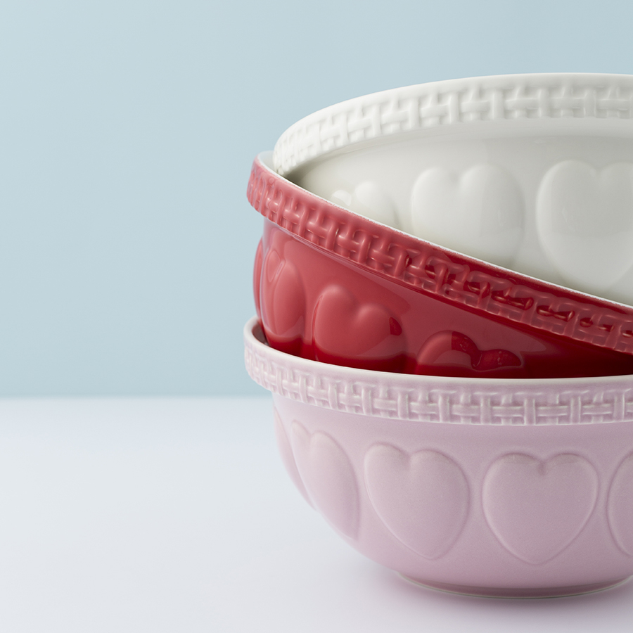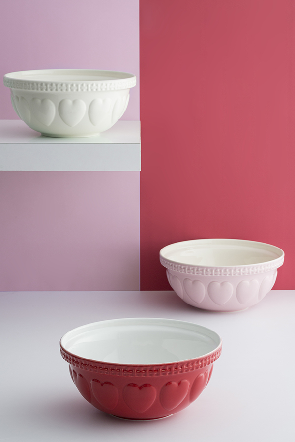 Миска Hearts добавит яркий акцент в современный интерьер вашей кухни. Посуда предназначена для замешивания теста, смешивания ингредиентов, а также подачи салатов или фруктов. Снаружи дизайнеры украсили изделие тисненым рисунком в виде сердец. Чаша выполнена из керамики, которая отличается прочностью и стойкостью к сколам. Изделие подходит для использования в микроволновой печи и мытья в посудомоечной машине. Миска доступна в широкой цветовой палитре.