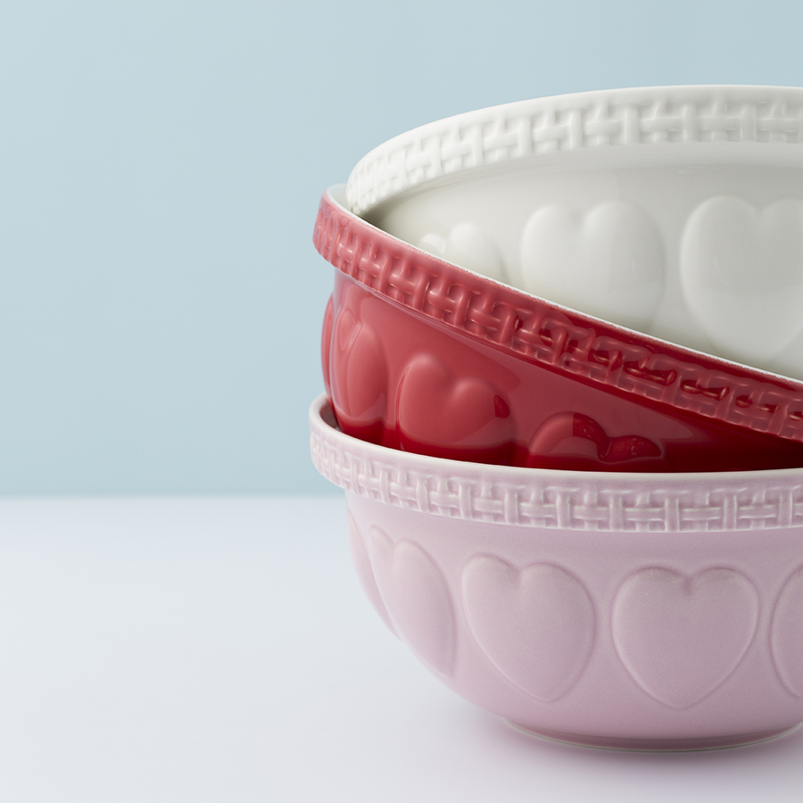 Миска Hearts добавит яркий акцент в современный интерьер вашей кухни. Посуда предназначена для замешивания теста, смешивания ингредиентов, а также подачи салатов или фруктов. Снаружи дизайнеры украсили изделие тисненым рисунком в виде сердец. Чаша выполнена из керамики, которая отличается прочностью и стойкостью к сколам. Изделие подходит для использования в микроволновой печи и мытья в посудомоечной машине. Миска доступна в широкой цветовой палитре.