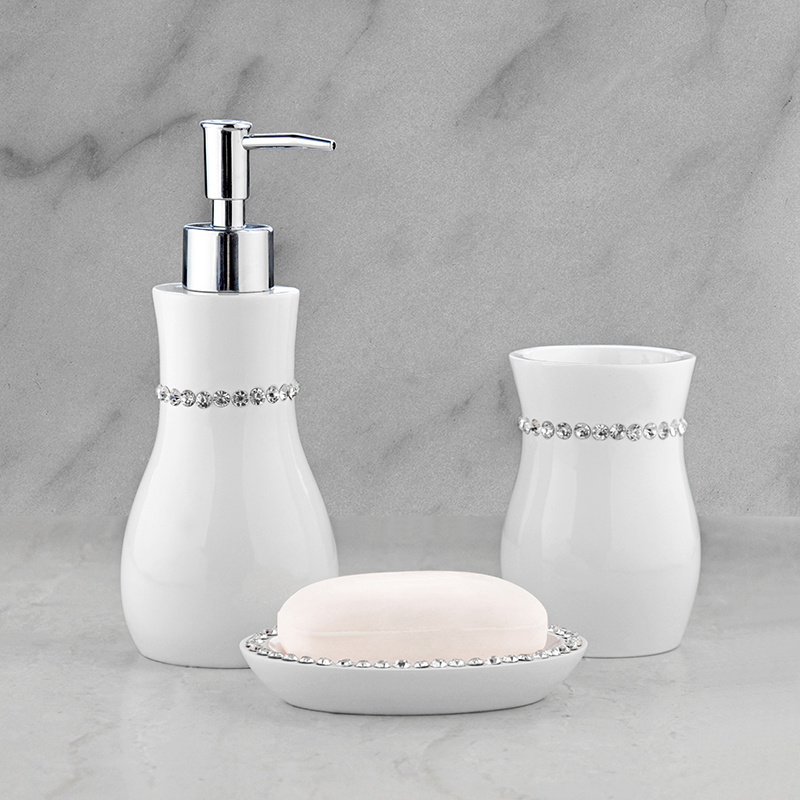 Подарочный набор для ванны. Комплектация: Дозатор для жидкого мыла Стаканчик для зубных щеток Мыльница для твердого мыла 100% Полирезина Упаковка: подарочная коробка
