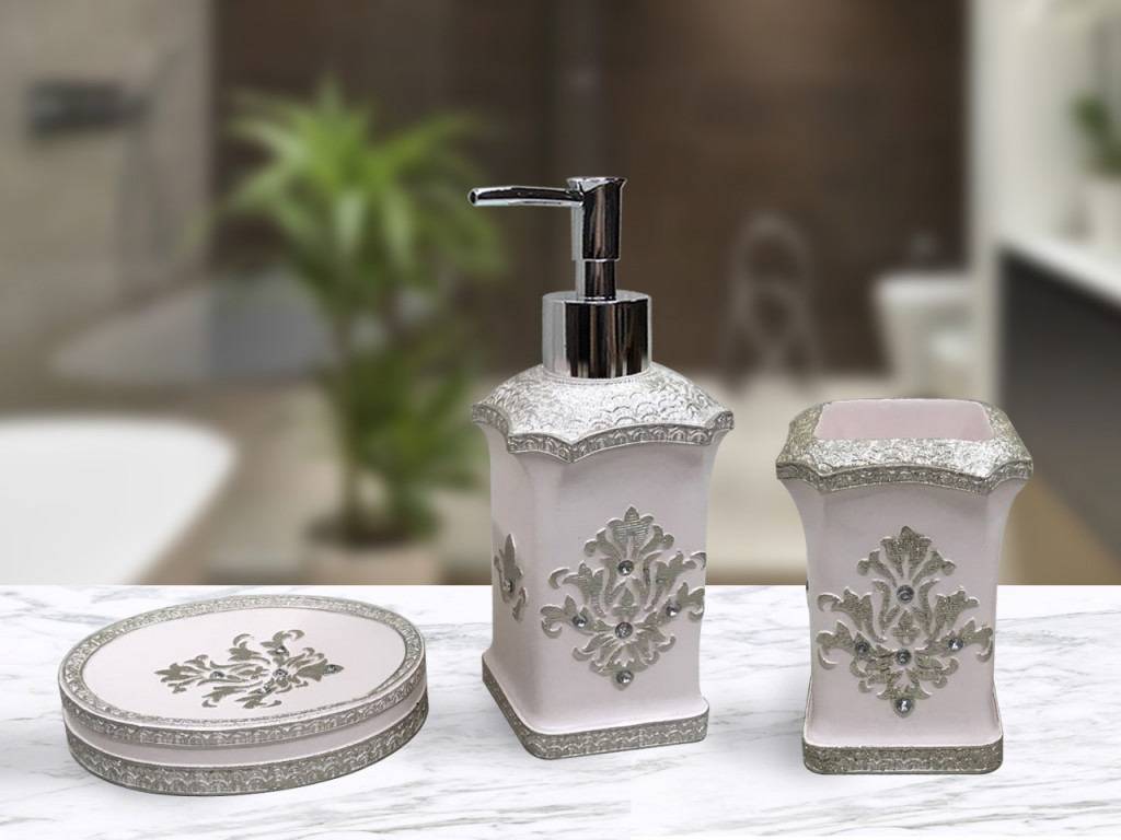 Подарочный набор для ванны. Комплектация: Дозатор для жидкого мыла Стаканчик для зубных щеток Мыльница для твердого мыла 100% Полирезина Упаковка: подарочная коробка