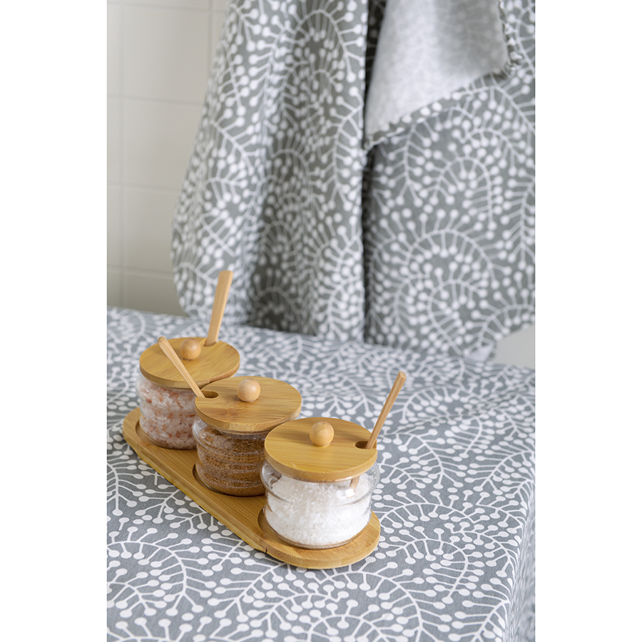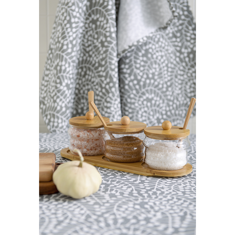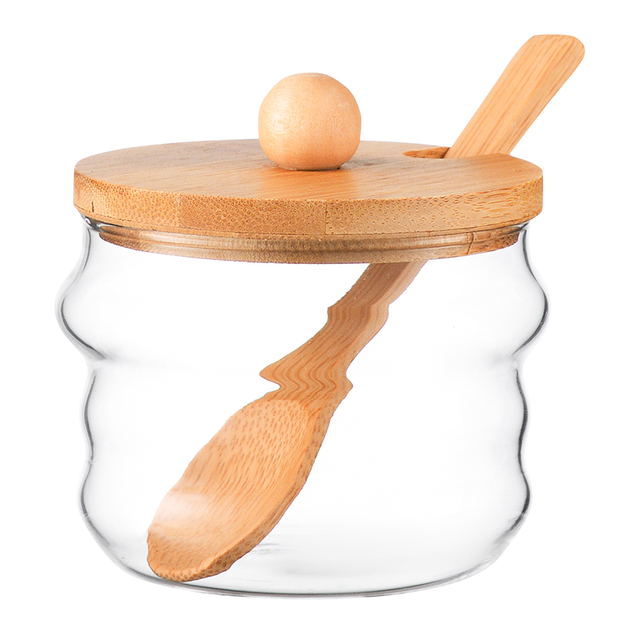 Банки из стекла с деревянной крышкой и ложкой великолепно дополнят коллекцию стильной посуды. Емкости идеально подходят для хранения специй. Благодаря компактности занимают минимум места на полке и в шкафу. Удачное сочетание материалов и лаконичный дизайн делают набор отличным приобретением и оригинальным презентом к празднику.