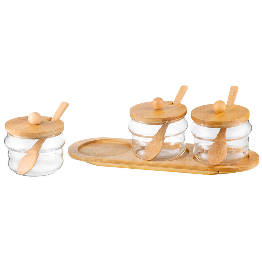 Материал: боросиликатное стекло, дерево. Объем: 300 мл. Количество предметов в наборе: 3 шт.