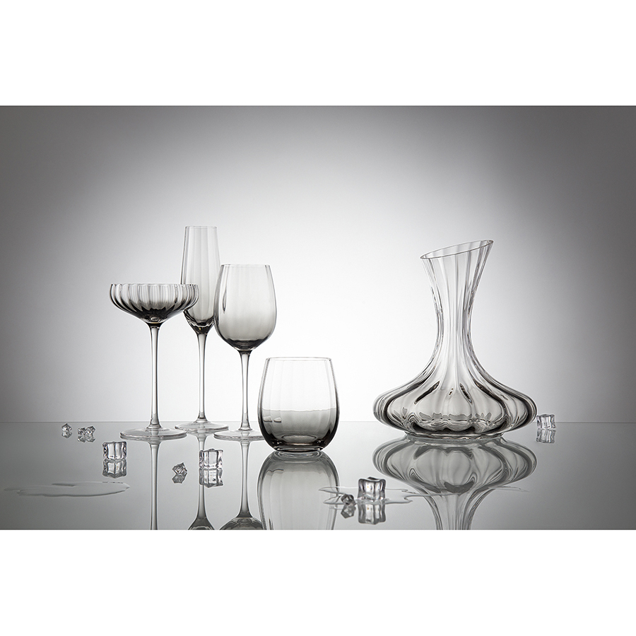 Линейка Gemma Agate привлекает лаконичным дизайном и стильным цветовым решением в дымчато-серых тонах. Вся посуда выполнена вручную из выдувного стекла. Такой способ производства позволяет играть с линиями и изгибами, создавая уникальные и неповторимые продукты. Изделия получаются более прочными, но при этом тоньше и прозрачнее аналогов из обычного стекла.