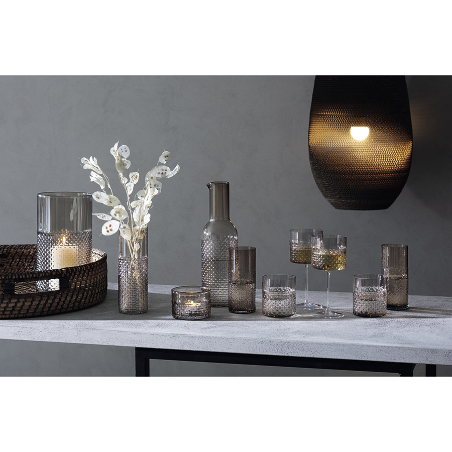 Коллекция Wicker – это посуда и аксессуары для сервировки напитков и декора помещения. Изделия выполнены в необычном дизайне с эффектом «плетеной» фактуры. Особенность производства состоит в помещении металлической сетки внутрь деревянной формы, в которой выдувается изделие. Коллекция представлена в двух вариациях: из пепельно-коричневого и прозрачного стекла.