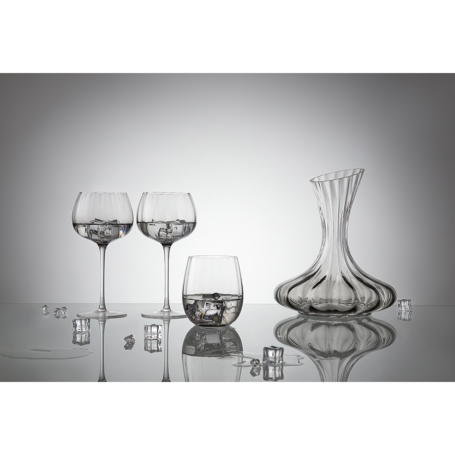 Линейка Gemma Agate привлекает лаконичным дизайном и стильным цветовым решением в дымчато-серых тонах. Вся посуда выполнена вручную из выдувного стекла. Такой способ производства позволяет играть с линиями и изгибами, создавая уникальные и неповторимые продукты. Изделия получаются более прочными, но при этом тоньше и прозрачнее аналогов из обычного стекла.