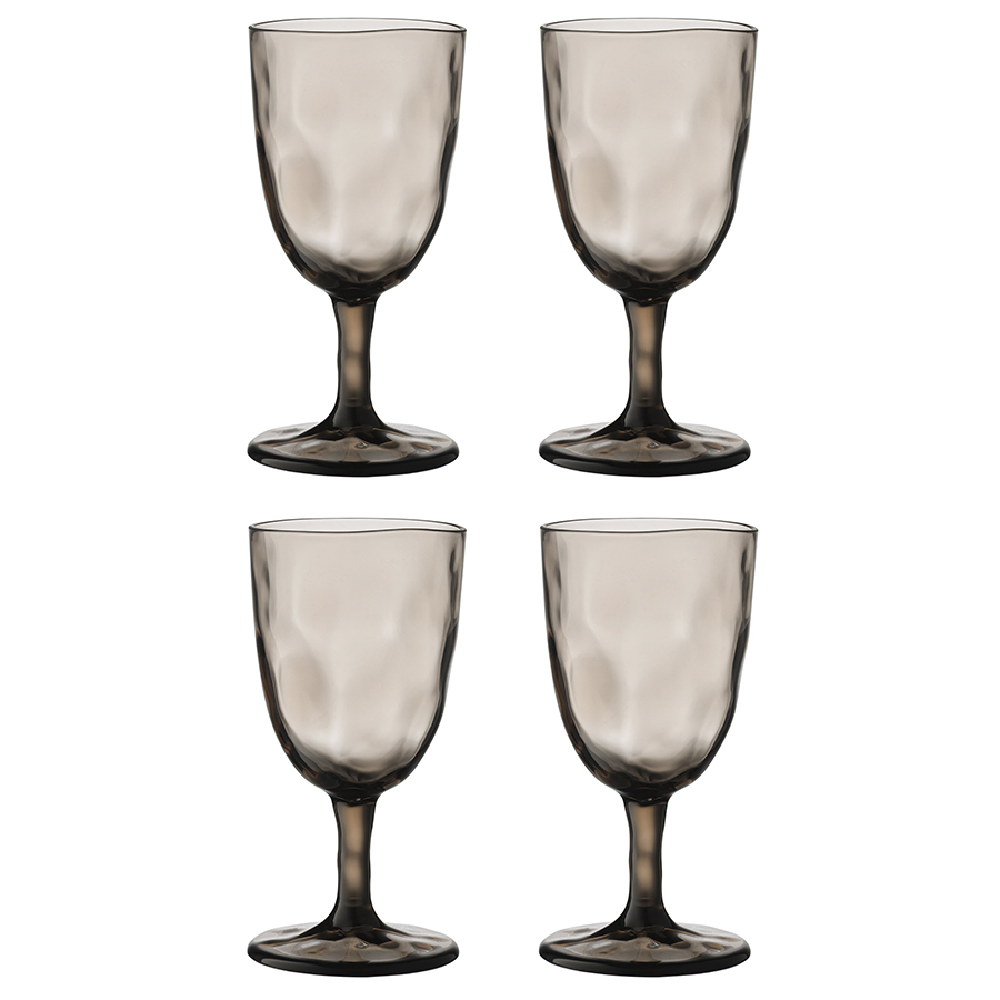 Материал: акрил. Объем: 430 мл. Размеры: 9х9х17,9 см. Верхний диаметр: 9 см. Нижний диаметр: 9 см. Высота ножки: 6 см. Толщина стенки: 0,02 см. Цвет: серо-коричневый. Количество в наборе: 4 шт.