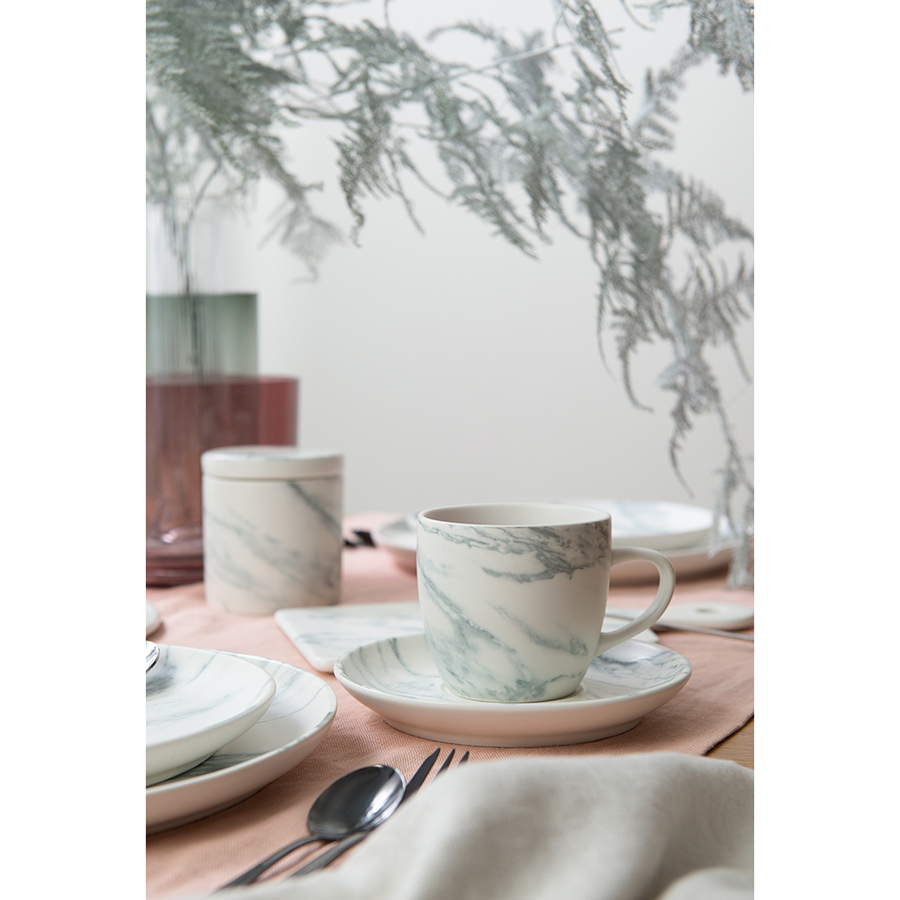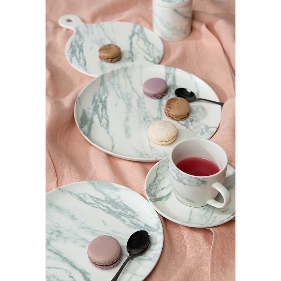 Чайная пара серии Marble – удачное сочетание стильного дизайна и превосходного качества. Коллекцию отличает ненавязчивый мраморный узор, который придает посуде элегантность и нотки благородства. Благодаря устойчивому к износу материалу изделия сохраняют привлекательный вид долгие годы. Набор подходит для повседневной и праздничной сервировки стола.