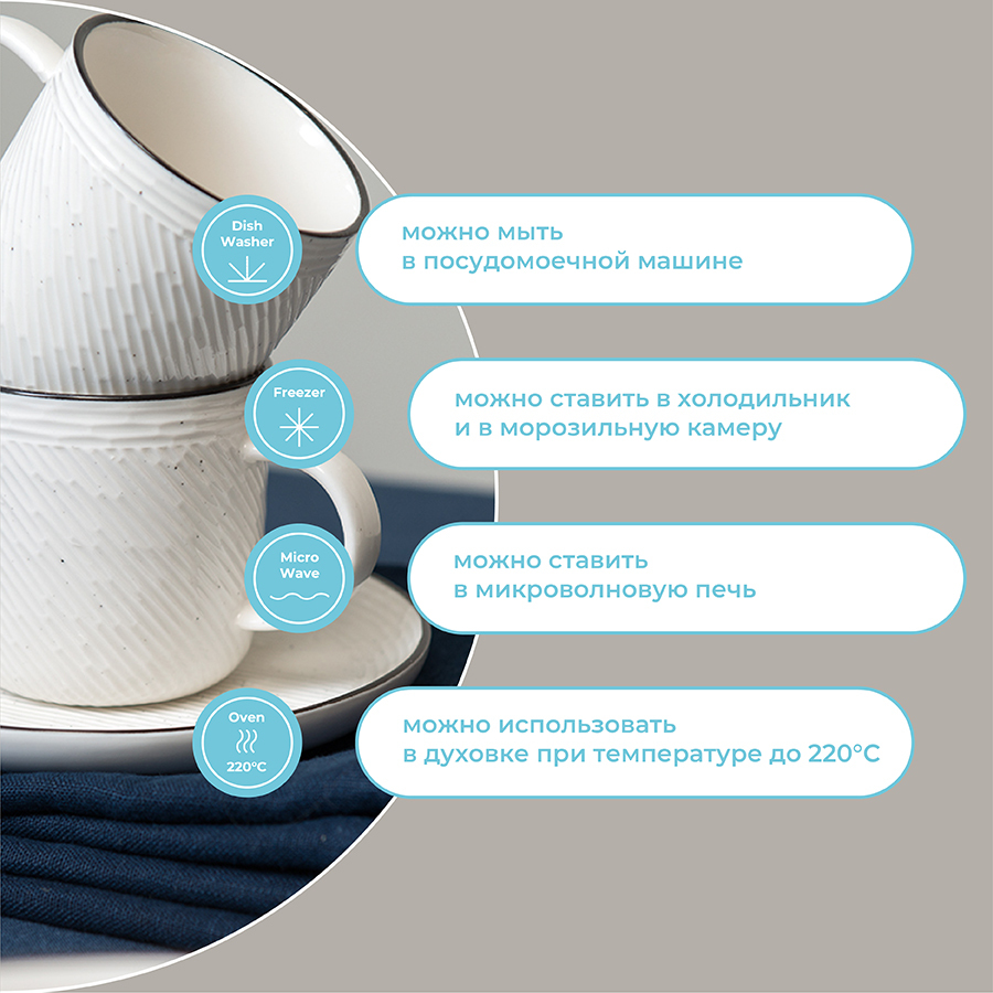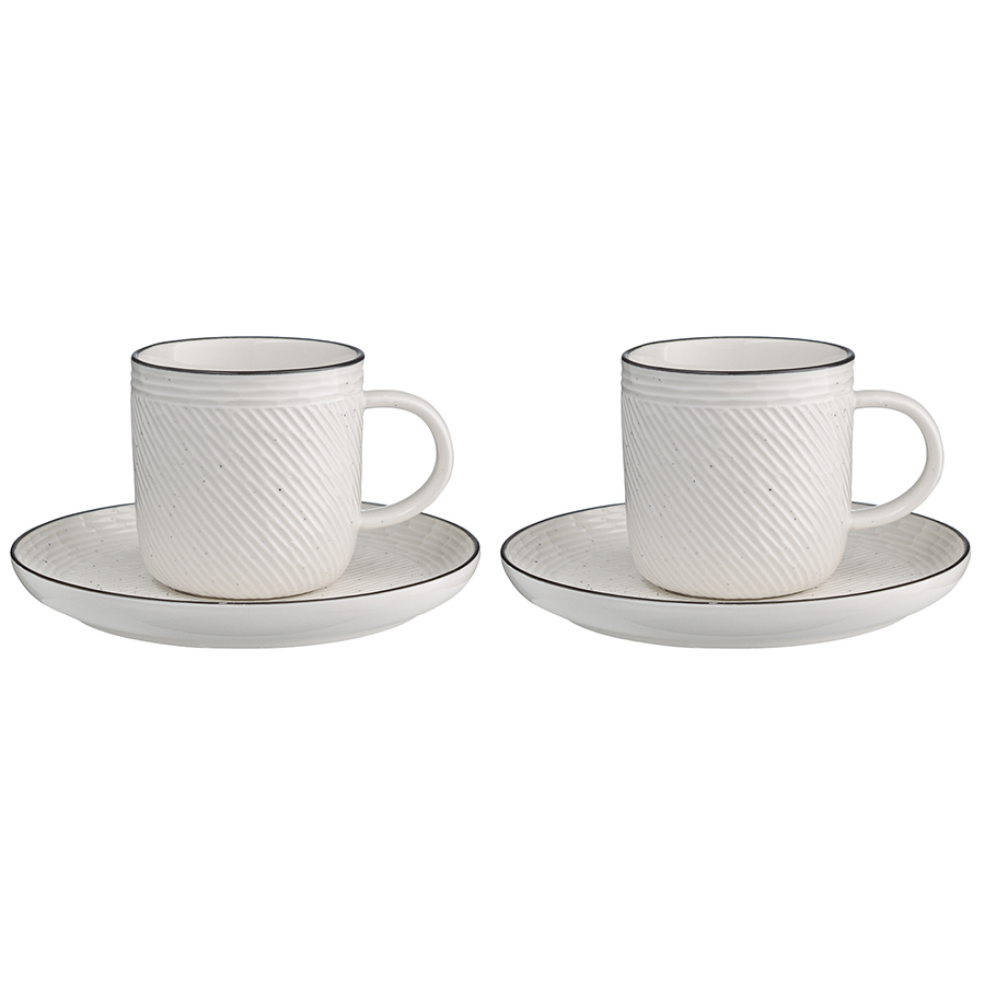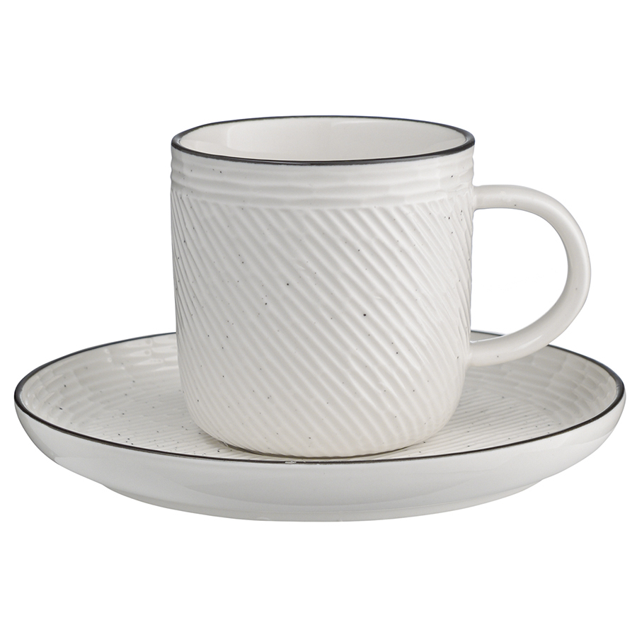 Чайная пара из белоснежного фарфора серии Contour станет неотъемлемой частью уютного чаепития. Рельефная поверхность и декоративная окантовка придают посуде оригинальный вид. Материал изготовления неприхотлив в уходе, не впитывает загрязнения, является экологичным и безопасным для здоровья. Набор идеально подходит как для повседневной, так и для праздничной сервировки стола.