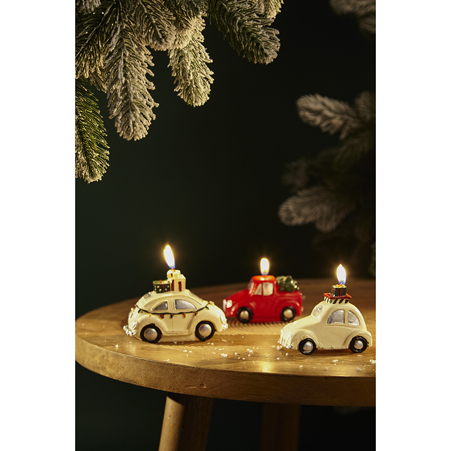 - Свечи, выполненные в виде автомобилей с подарками, привлекут к себе внимание и идеально подойдут для создания новогоднего настроения.