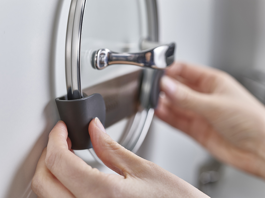 Набор из 4 держателей CupboardStore – практичное решение для хранения крышек диаметром 16-24 см. Изделия идеально подходят для монтажа на дверях шкафа или внутри глубоких ящиков. С помощью прочной ленты держатели для крышек надежно крепятся к любой поверхности.