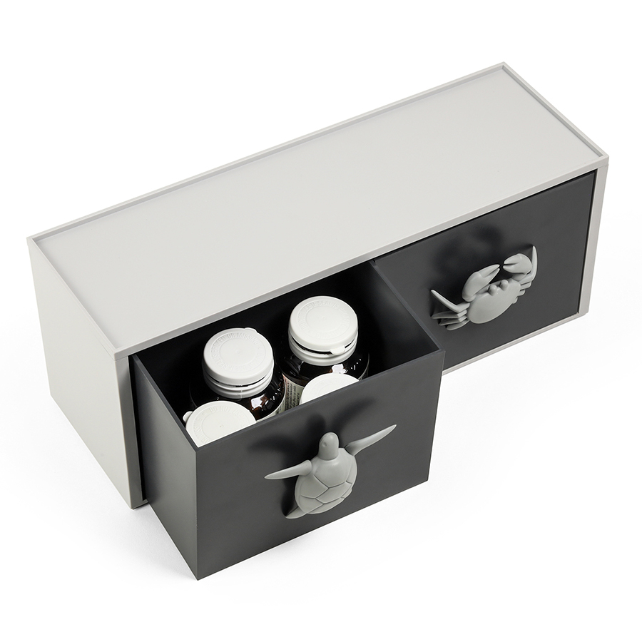 Набор для хранения Ocean – прямое доказательство того, что можно заботиться об экологии, используя пластиковые отходы для вторичной переработки. Корпус изделия выполнен из практичного и долговечного АБС-пластика, ручки – из полиамида. Конструкция с двумя отделениями позволяет удобно разместить необходимые подручные предметы: аксессуары, украшения и др. Необычный дизайн в морской тематике непременно станет изюминкой любого интерьера.
