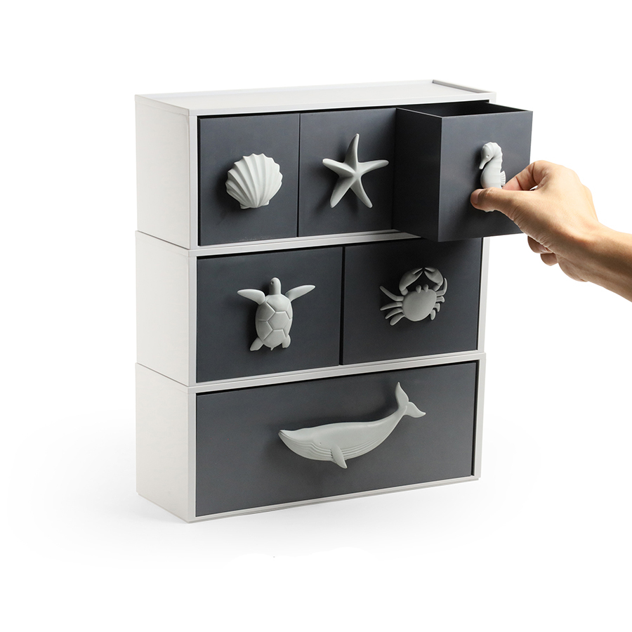 Набор для хранения Ocean – прямое доказательство того, что можно заботиться об экологии, используя пластиковые отходы для вторичной переработки. Корпус изделия выполнен из практичного и долговечного АБС-пластика, ручки – из полиамида. Конструкция с несколькими отделениями позволяет удобно разместить необходимые подручные предметы: аксессуары, украшения и др. Необычный дизайн в морской тематике непременно станет изюминкой любого интерьера.