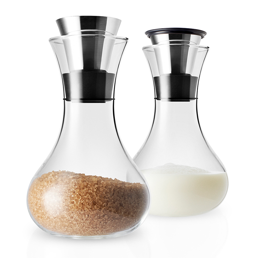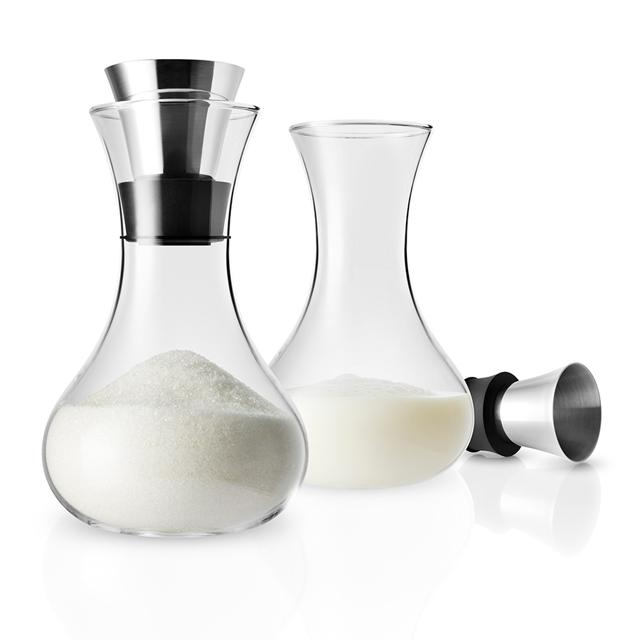 Сахарница снабжена дозатором, который каждый раз отмеряет ровно 1 чайную ложку. Молочник имеет горлышко запатентованной конструкции ни капли мимо и удобную силиконовую крышку для хранения молока. Набор можно мыть в посудомоечной машине.