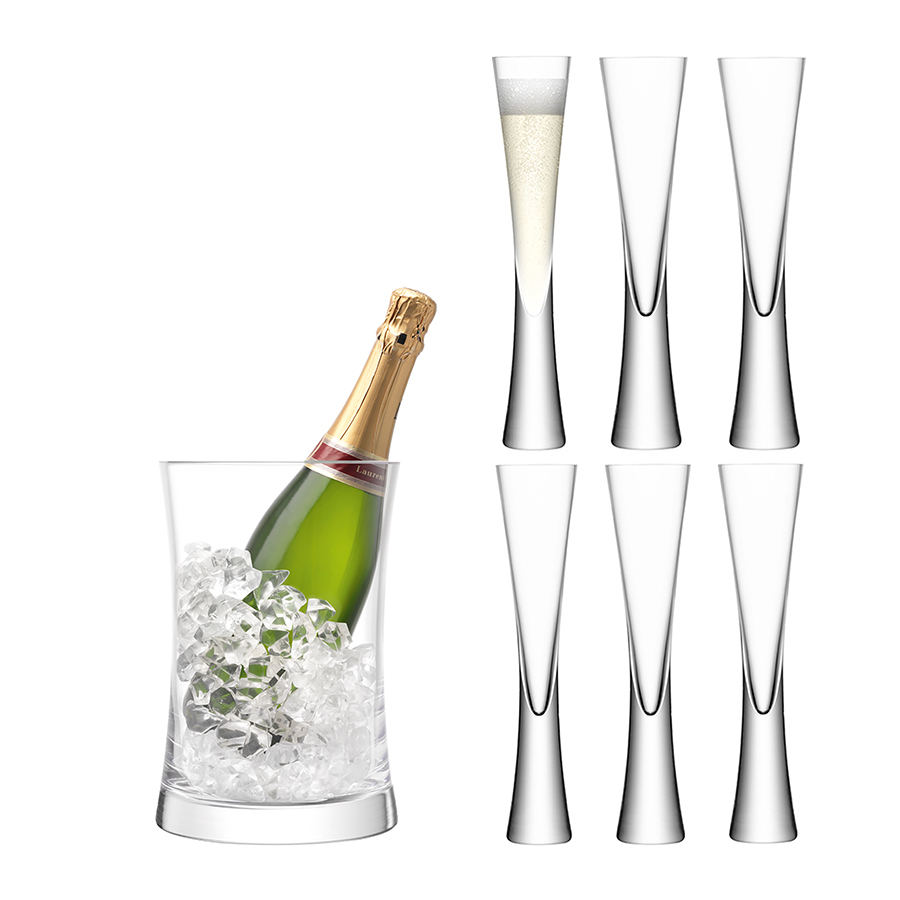Набор из 6 бокалов-флейт для шампанского и ведёрка для бутылки игристого вина, который подойдет для небольшой вечеринки. Комбинируйте набор с другими предметами коллекции Moya для создания законченной композиции. Он упакован в красивую коробку и станет роскошным подарком для всех в любителей праздников.