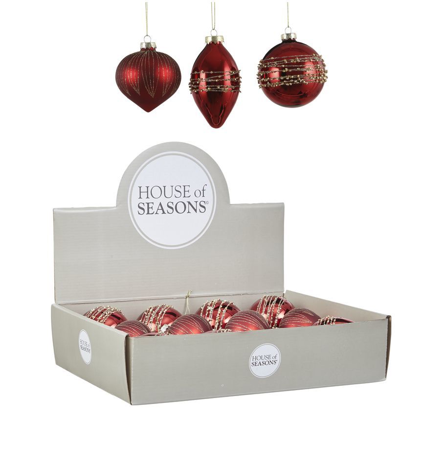 Набор елочных игрушек 12шт 8см House of Seasons Шар красный 3 вида 84007