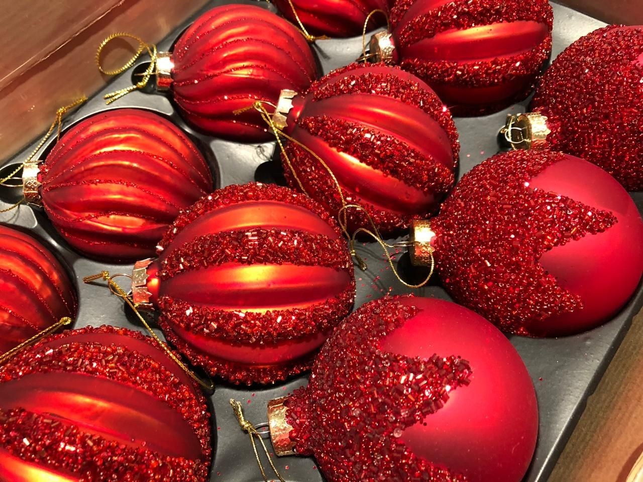 Набор елочных игрушек 12шт 8см House of Seasons Шар красный 3 вида 84020
