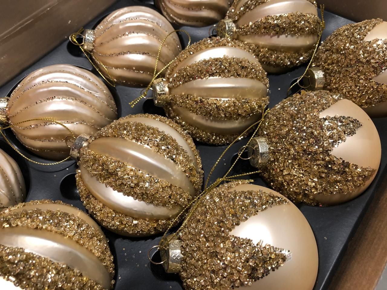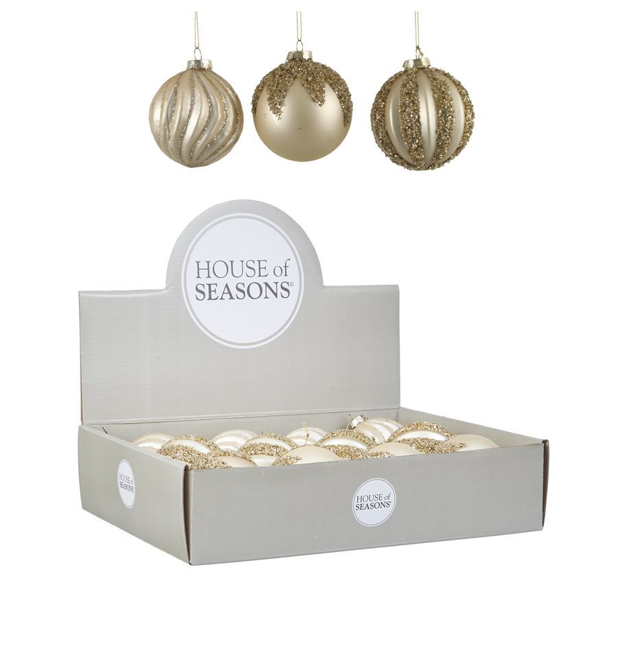 Набор елочных игрушек 12шт 8см House of Seasons Шар шампань 3 вида 84019